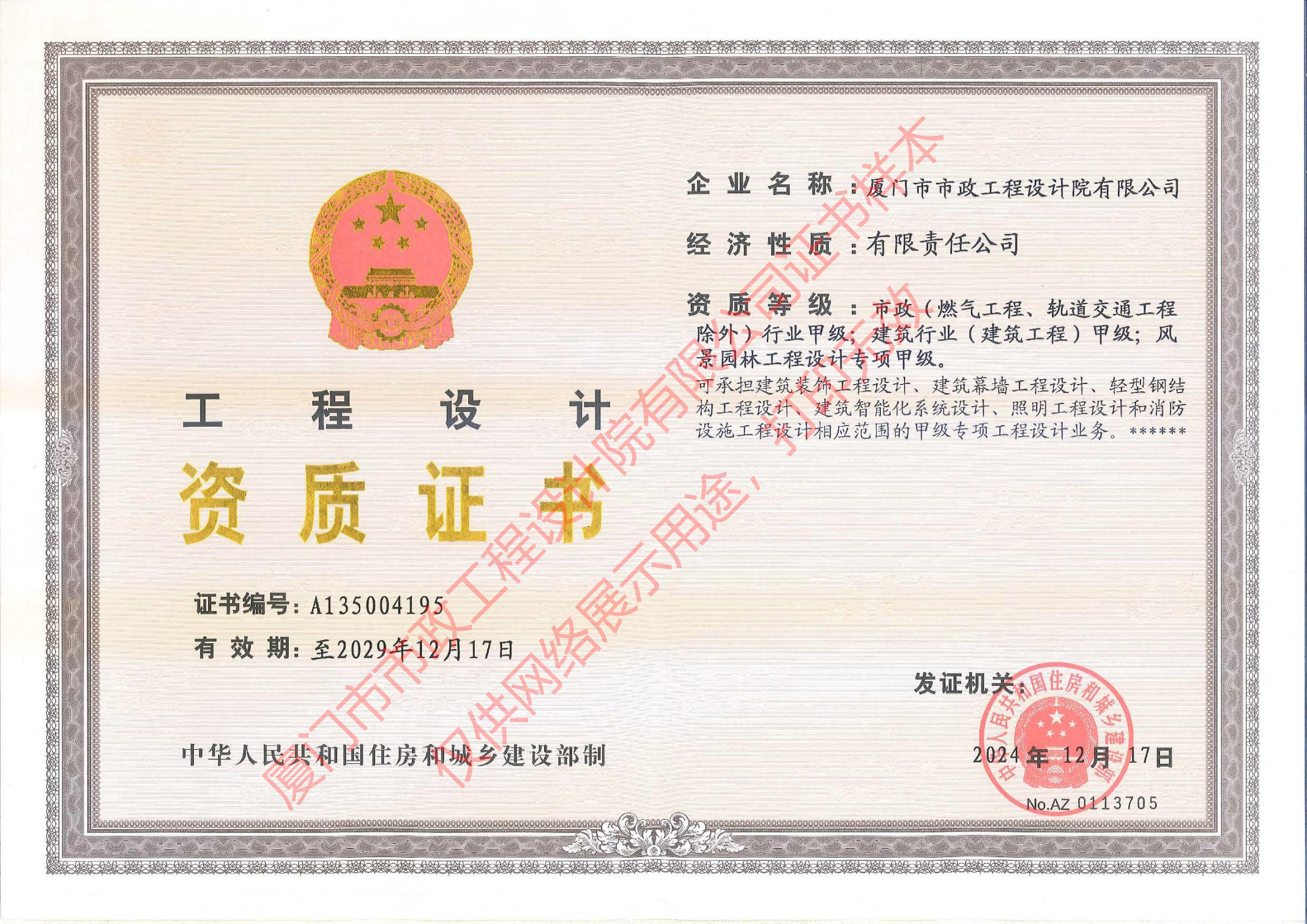 厦门市政市政、建筑、风景园林设计甲级