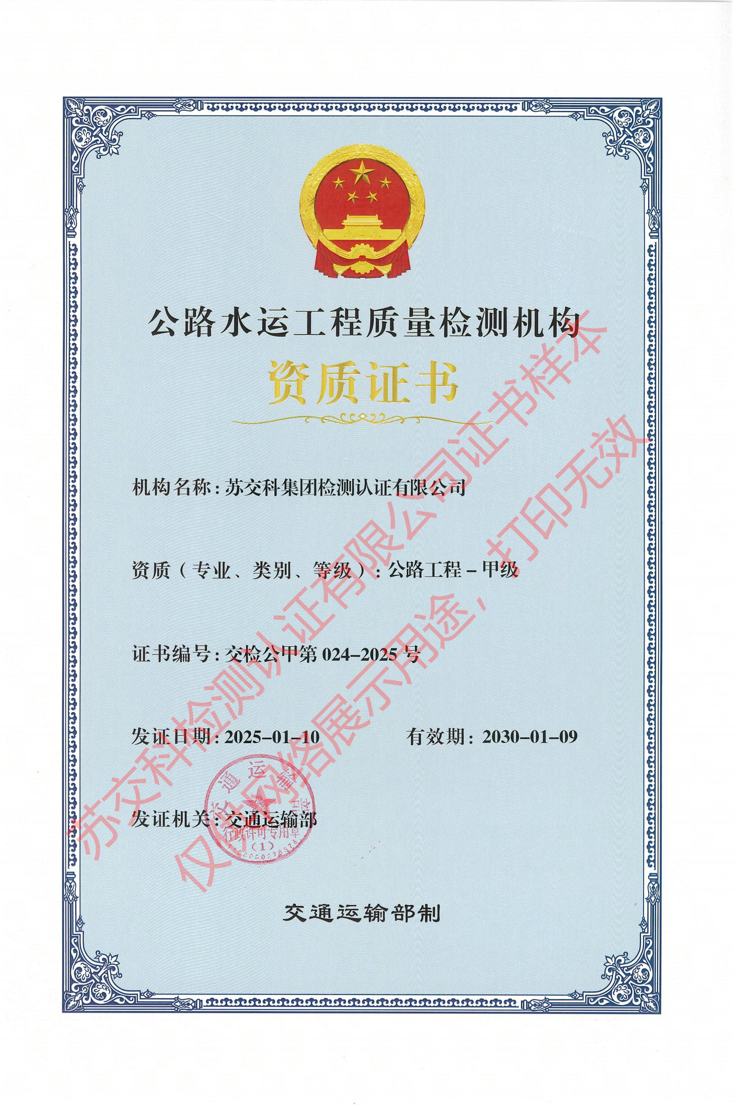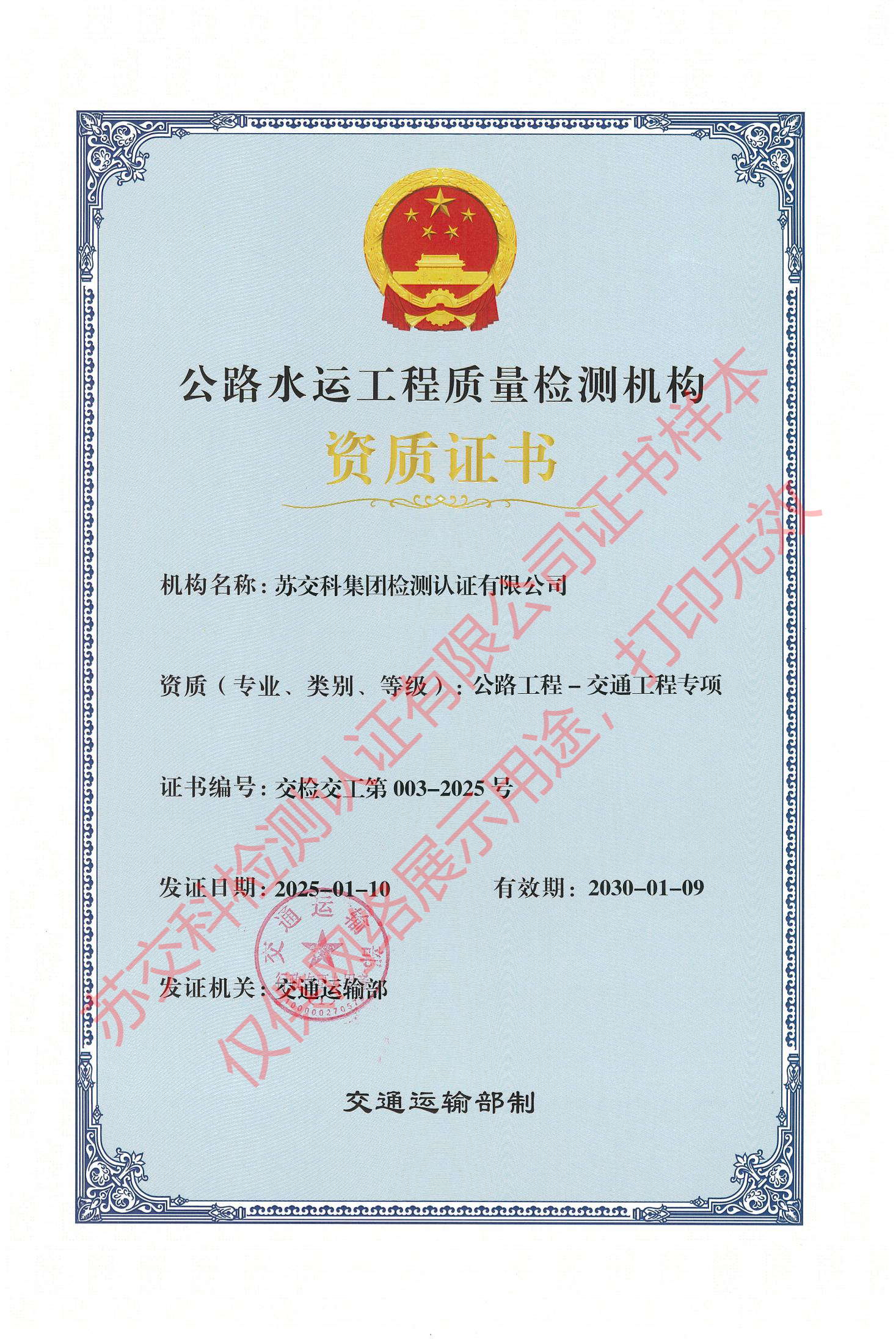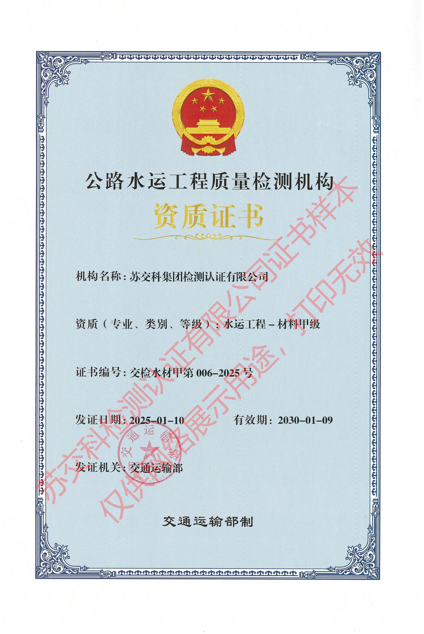 388vip太阳集团官网检测认证水运材料甲级