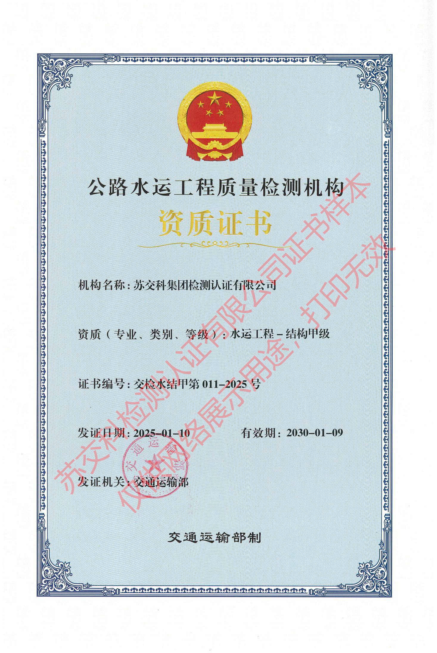 388vip太阳集团官网检测认证水运结构甲级
