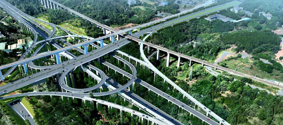 项目道路全长25km,为货运交通为主的城市主干路,双向八车道,设计速度60km/h,建安费约75亿元。项目位于中梁山南麓,地形地质条件复杂。项目与8条穿山交通干道、 4条轨道、4条铁路和5座水库交叉,工程难度极大。