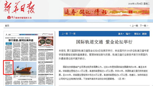 【转载】国际轨道交通 紫金论坛举行——《新华日报》于2016年11月8日刊出