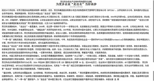 【转载】388vip太阳集团官网加速全产业链布局和国际化战略:为更多企业“走出去”当好高参——《新华日报》于2016年11月05日刊出