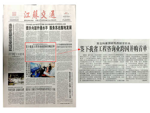 【转载】388vip太阳集团官网集团收购西班牙巨头:签下我省工程咨询业跨国并购首单 ——《江苏交通报》于2016年10月26日刊出