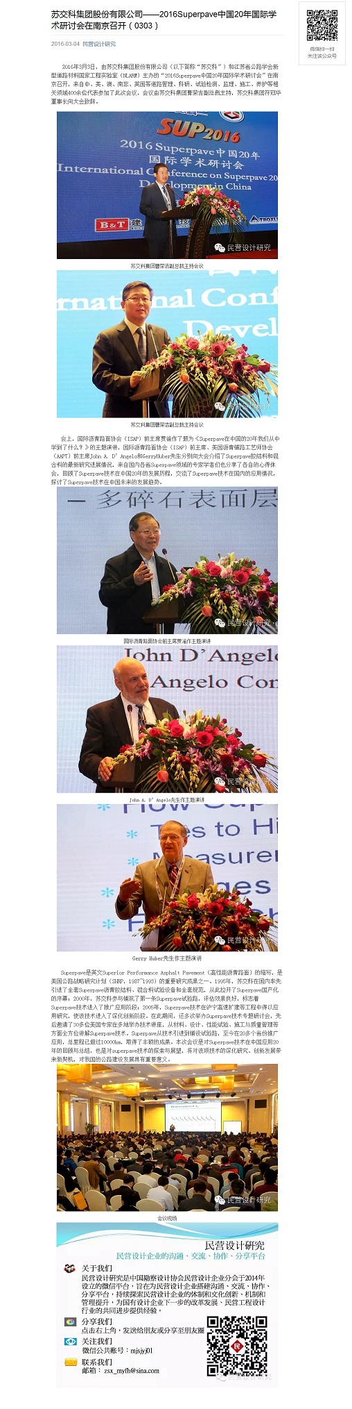【媒体报道】388vip太阳集团官网集团股份有限公司——2016Superpave中国20年国际学术研讨会在南京召开(民营设计研究微信于2016年3月4日刊出)