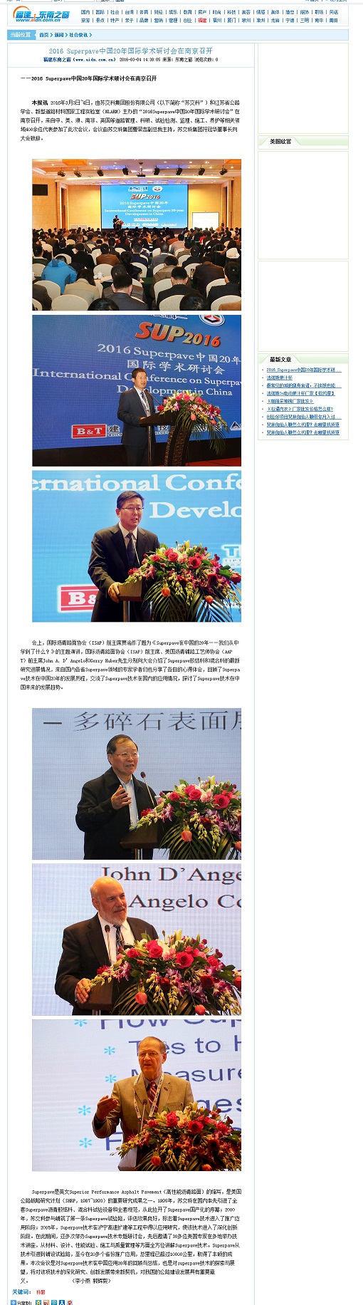 【媒体报道】2016 Superpave中国20年国际学术研讨会在南京召开——福建东南之窗网站于2016年3月4日社会快讯版刊出