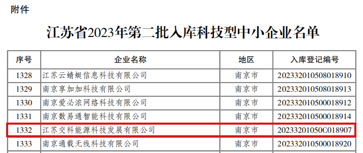 喜报 | 集团旗下交科能源再次获评“2023年江苏省科技型中小企业”称号