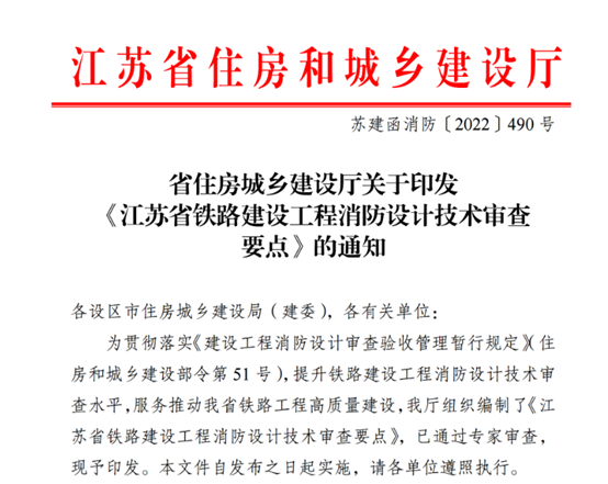 集团主编的《江苏省铁路建设工程消防设计技术审查要点》顺利通过验收并印发