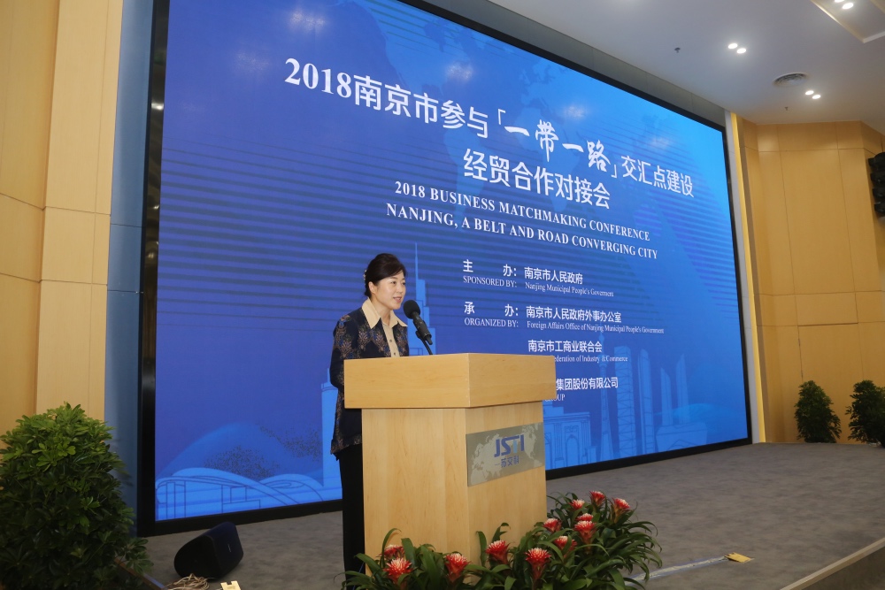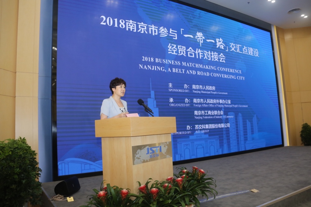 9月6日下午,由南京市人民政府主办,市政府外事办公室、市工商联承办,388vip太阳集团官网集团协办的2018南京市参与“一带一路”交汇点建设经贸合作对接会在388vip太阳集团官网南京设计中心召开。南京市委常委、统战部部长华静、市委统战部副部长、市工商联党组书记毛卫华、市政府外办副主任夏炎、市工商联党组成员、副主席钱卫冰、市工商联副主席、388vip太阳集团官网集团股份有限公司副董事长王军华出席会议。会议邀请了相关国家使领馆代表、境外经贸机构以及苏宁、金浦等近50家南京市开放型民营企业参会。会议由南京市外办主任李爱君主持。