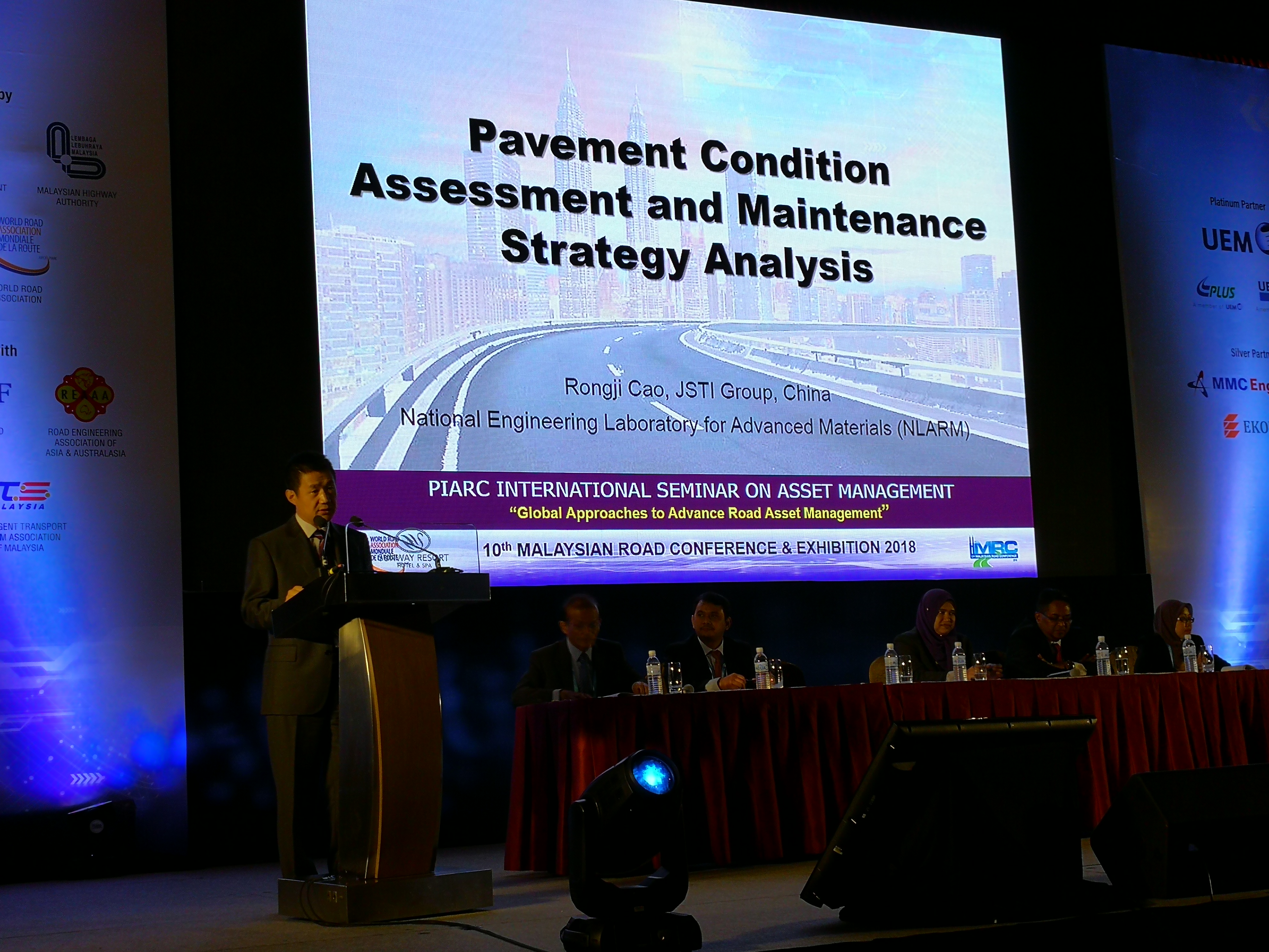近日,由马来西亚工程部和PIARC世界道路协会共同主办的第10届马来西亚道路会议暨PIARC资产管理国际研讨会在马来西亚吉隆坡举行。来自美国、英国、墨西哥、日本等多个国家地方政府、交通运输部门的负责人、专家参加会议。388vip太阳集团官网集团首席工程师、新型道路材料国家工程实验室主任、世界道路协会委员曹荣吉,燕宁新材料副总经理陈刚等应邀参加。此次赴马来西亚交流,进一步提升了实验室在道路资产管理这一新兴国际技术领域的知名度,推进了388vip太阳集团官网集团“一带一路”海外橡胶沥青项目的实施。