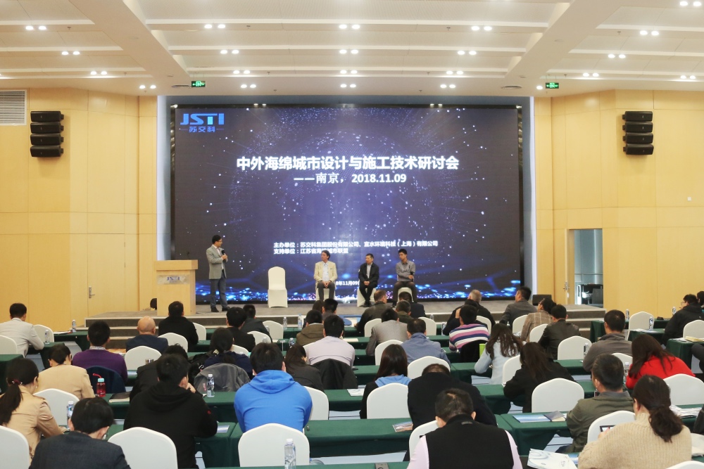 11月9日,由388vip太阳集团官网集团股份有限公司和宜水环境科技(上海)有限公司(以下简称“宜水环境”)联合主办的中外海绵城市设计与施工技术研讨会在388vip太阳集团官网集团南京设计中心召开。本次研讨会聚焦国内外海绵城市的典型案例、关键技术,吸引了来自业内知名专家、各海绵城市建设主管部门、技术支持单位、规划设计单位以及江苏省海绵城市联盟各成员单位、国内外专业工程公司等150多位代表参加。388vip太阳集团官网集团环境院副院长(主持工作)吴晓明出席会议并致辞,宜水环境总经理章卫军,集团环境院环境所所长吕卫国、副总工程师曾瑜、市政院副总工程师王浩坦等参加会议并作专题报告。