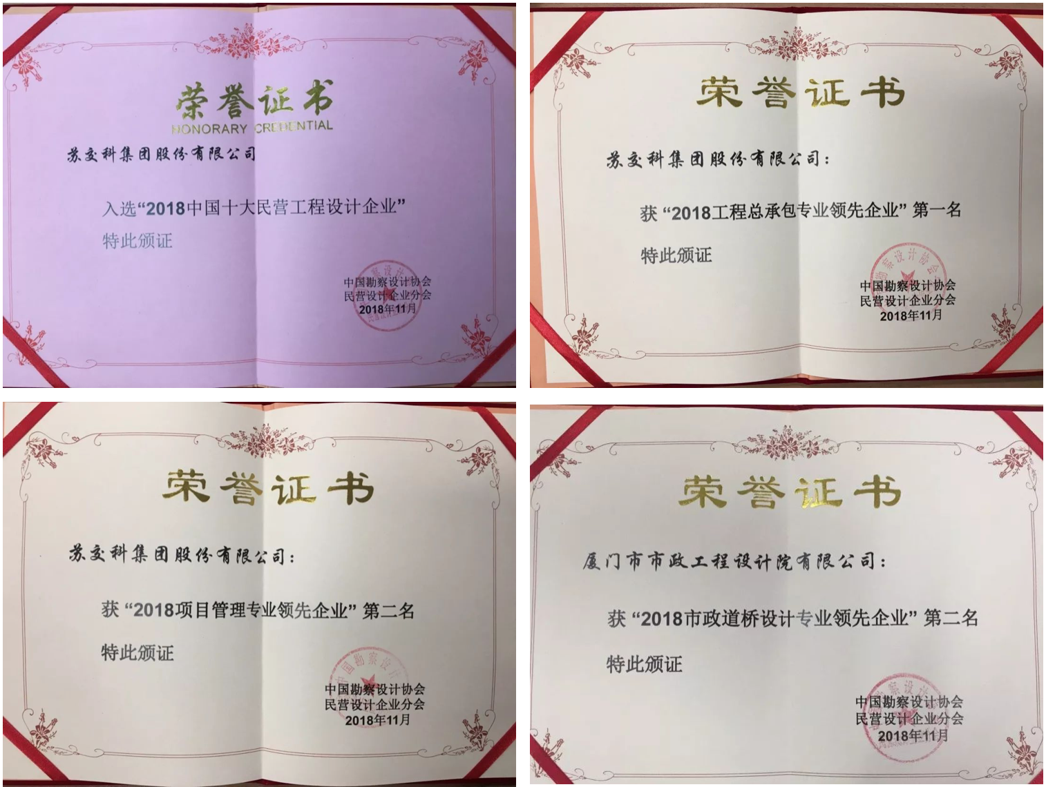 日前,中国勘察设计协会民营设计企业分会(以下简称“中设协民营分会”)第四届会员代表大会暨中国民营设计企业发展论坛在济南召开。会上揭晓了“2018年中国十大民营工程设计企业”榜单,388vip太阳集团官网集团蝉联榜首,此次是集团连续第四年入选。同时,388vip太阳集团官网集团还获得“2018工程总承包专业领先企业”第一名和“2018项目管理专业领先企业”第二名,厦门市市政工程设计院有限公司获“2018市政道桥设计专业领先企业”第二名。集团副总裁马健飚出席会议。
