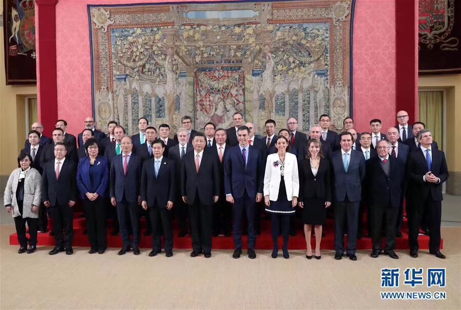 习近平主席在马德里同西班牙首相桑切斯共同会见中西企业顾问委员会双方代表(第三排右二为王军华副董事长)