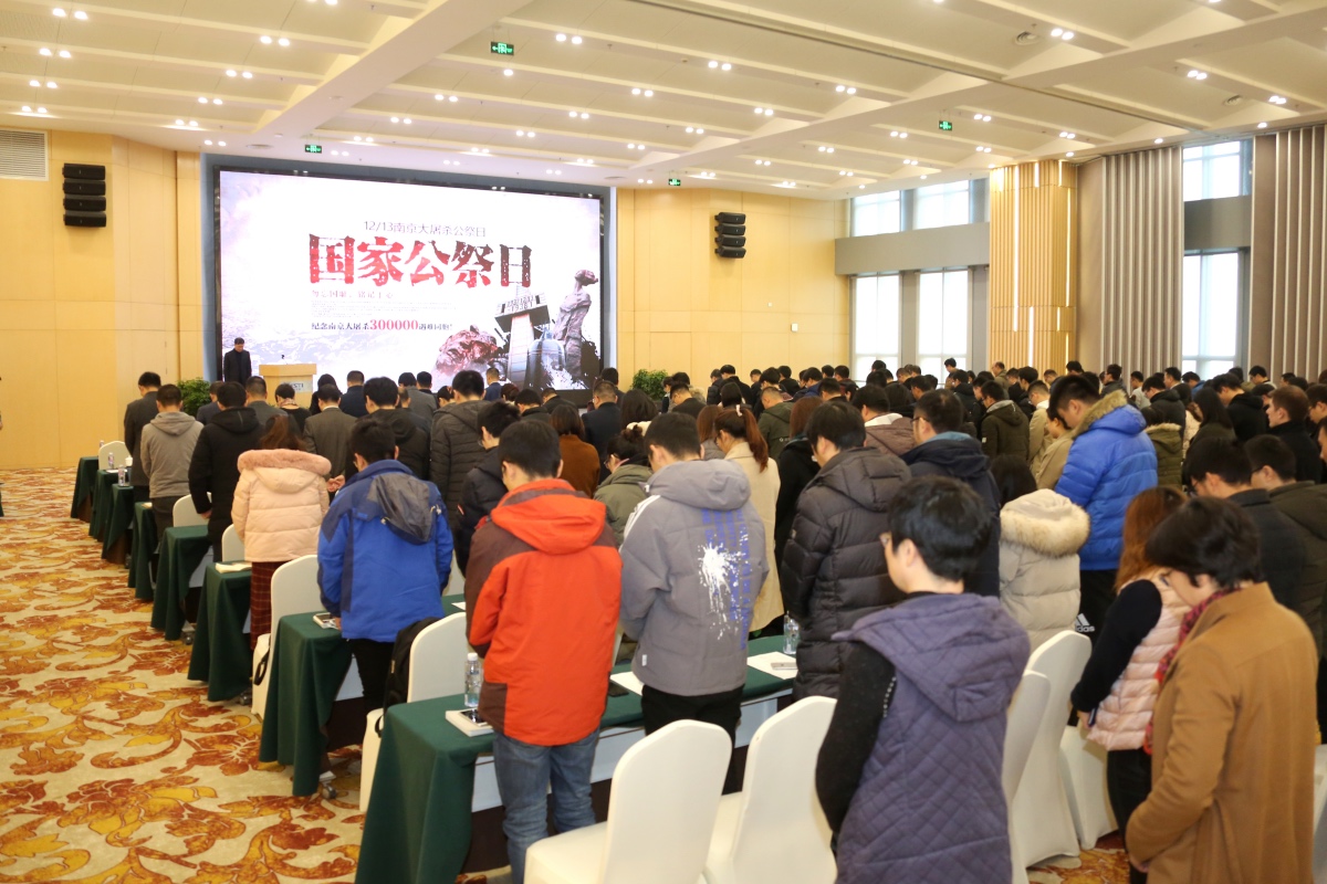 今天是国家公祭日,上午10点,全体与会人员向国殇中的遇难同胞默哀。