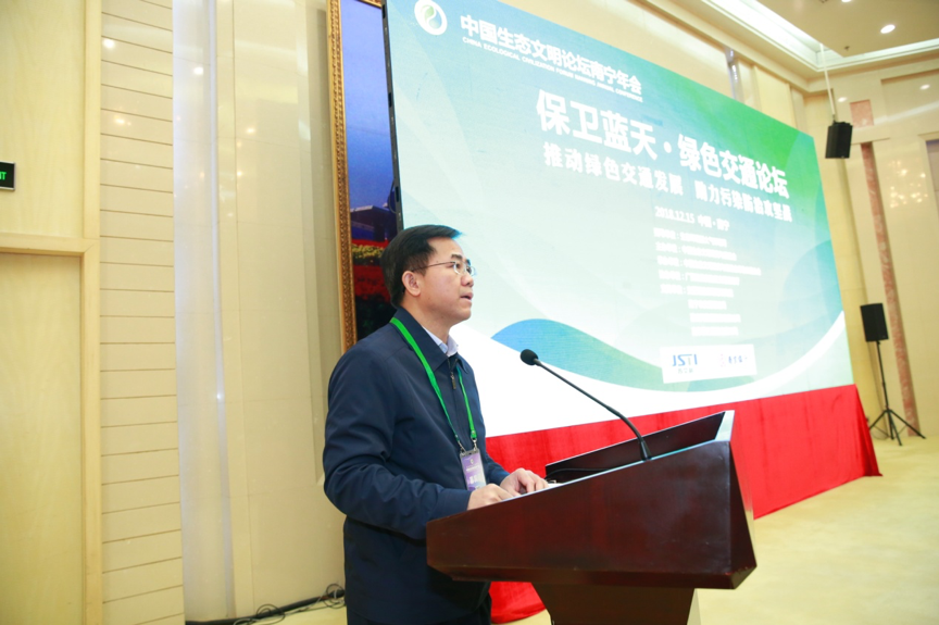 南宁市交通运输局党组书记、局长蔡友清作“以交通运输绿色转型发展 ,助力污染防治攻坚战”主题演讲