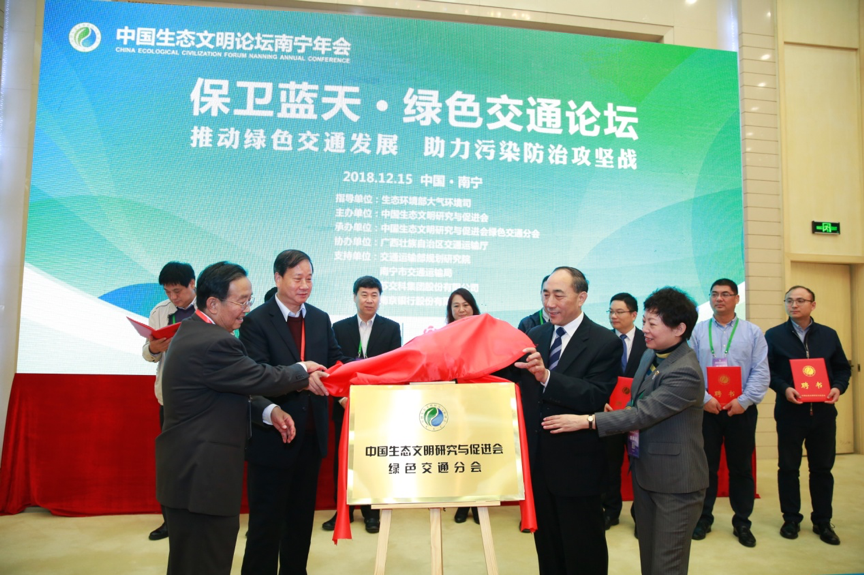 12月15日,中国生态文明论坛年会“保卫蓝天·绿色交通论坛”在广西壮族自治区南宁国际会展中心成功举办。本次论坛以“推动绿色交通发展,助力污染防治攻坚战”为主题,聚焦绿色交通建设的政策研究、关键技术与典型案例,来自生态环境部、交通运输部、中国生态文明研究与促进会(以下简称“研促会”)、部分省市交通和环保主管部门,自治区运管局、公路局、高管局、北港管理局等部门,以及绿色交通分会发起单位等近200位领导、专家学者参加了论坛。研促会副会长、陕西省人大常委会原副主任李晓东主持本论坛的绿色交通分会成立仪式及演讲环节,对话交流环节由388vip太阳集团官网集团环境院副院长(主持工作)吴晓明主持,生态环境部大气环境司巡视员李培、广西壮族自治区交通运输厅副厅长韦勇球分别致辞。集团总裁李大鹏出席并作主旨演讲。