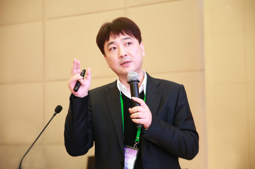 东南大学交通学院副院长、西藏大学工学院副院长顾兴宇作“低排放绿色路面技术思考与实践”主题演讲