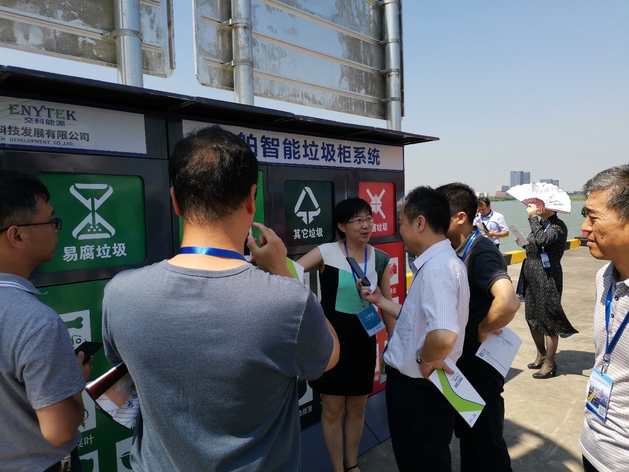 与会代表考察了苏州工业园区内河集装箱码头、吴中水上服务区和苏州交通运输指挥中心。交科能源工作人员向与会领导详细介绍了智能垃圾柜系统的功能及产品优势,并现场演示了“船方送交垃圾、船舶基本信息识别、位置校验、垃圾称重、接收证明打印”的整个过程。