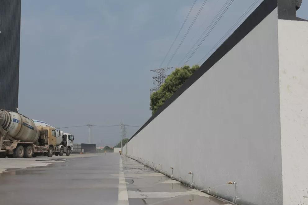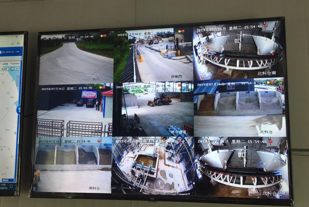 水泥混凝土集中供应生产线实现了钢结构全封闭、全智能化生产作业。无线智能环保自动喷淋降尘系统,能够有效控制扬尘;利用压滤系统对污水进行泥水分离,泥饼可二次利用,实现污水零排放;利用视频监控系统、人员、运输车辆GPS定位系统、生产质量管控系统,全方位对场内、车辆运输过程及混凝土质量进行监管,有效地提升了质量和安全生产的管理效能。