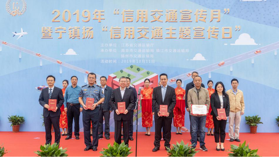 10月11日,江苏省交通运输厅联合宁镇扬三地交通运输部门在南京、镇江、扬州三地同步开展以“建设信用交通,推动高质量发展”为主题的“信用交通主题宣传日”活动。江苏省交通运输厅副厅长金凌、江苏省信用办副主任程友华在主会场南京出席活动。活动现场还表彰了第二届(2017-2018年度)全省交通运输行业“十佳诚信单位”,388vip太阳集团官网集团副总裁何兴华领取了荣誉证书。