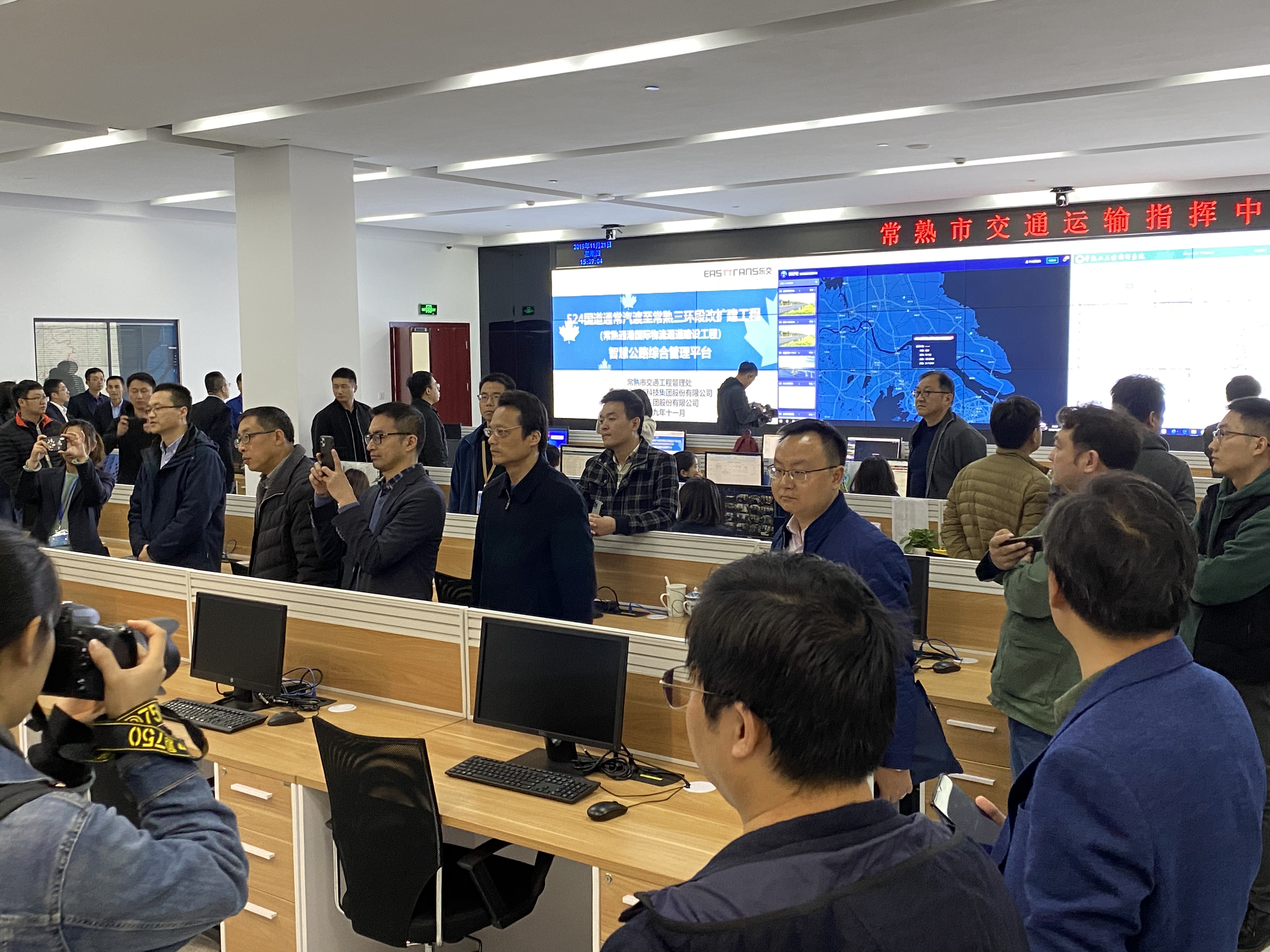 ▲ 江苏省交通运输厅公路事业发展中心及各地市公路管理处领导参观常熟市交通指挥中心