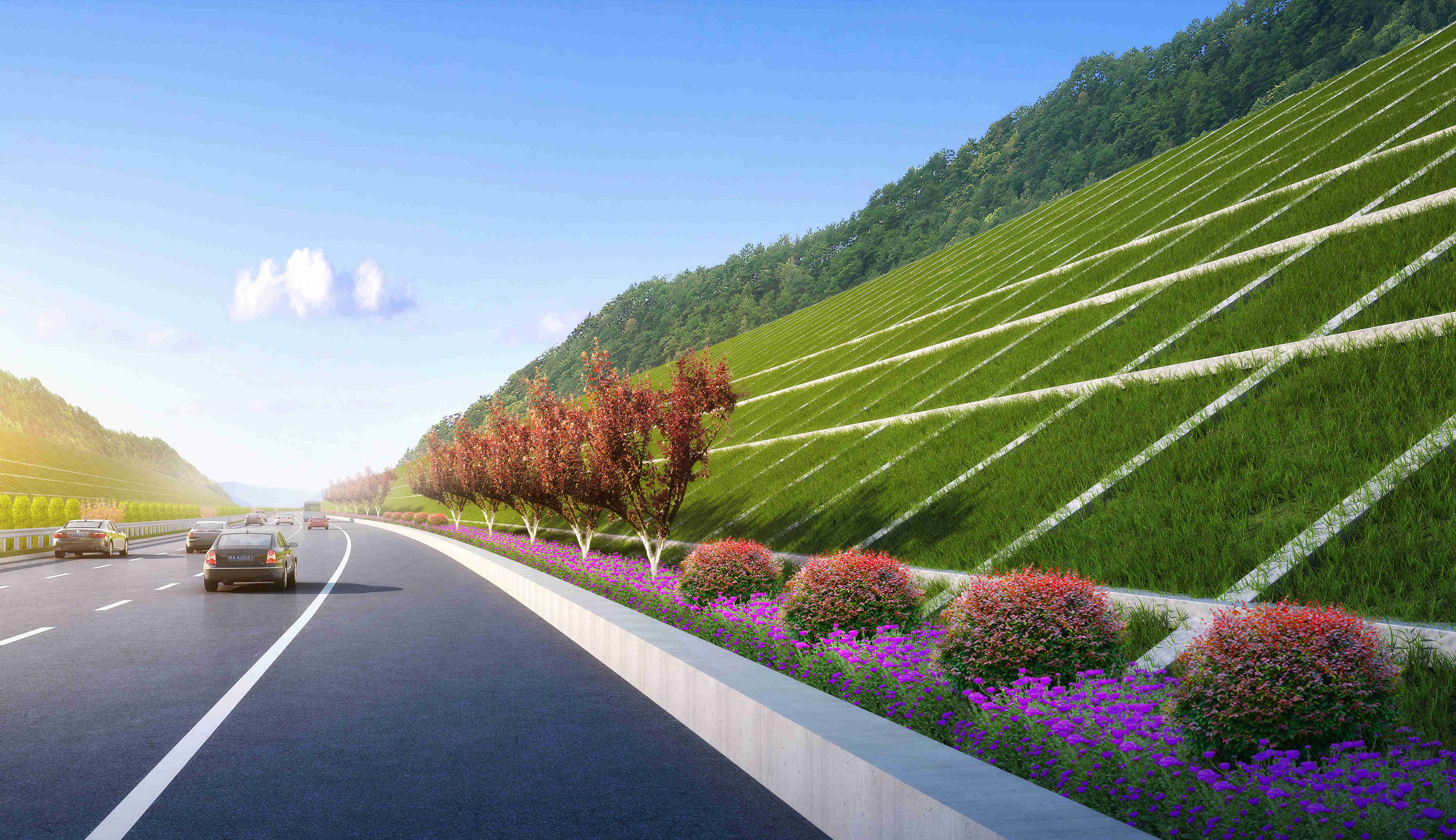 集团承担项目段公路工程勘察设计工作,包括路线、路基、路面、桥涵、隧道、交叉工程(含联络线)、交通工程及沿线设施、景观绿化工程设计等。秉承“绿色公路建设”理念,最大程度保护当地环境,提高周围土地利用率。