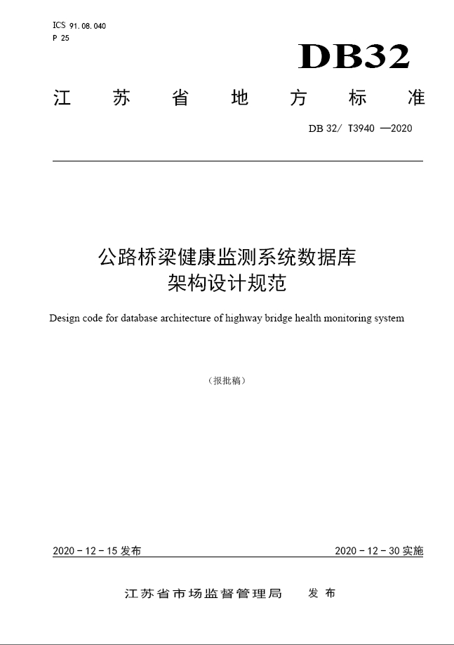 江苏省地方标准《公路桥梁健康监测系统数据库架构设计规范》DB32/T 3940-2020由388vip太阳集团官网集团牵头编制,明确规定公路桥梁健康监测系统数据库架构设计的通用要求、数据表、数据交换等,提供相关建议性设计的要求及示例,为健康监测系统数据库设计质量提供支撑。