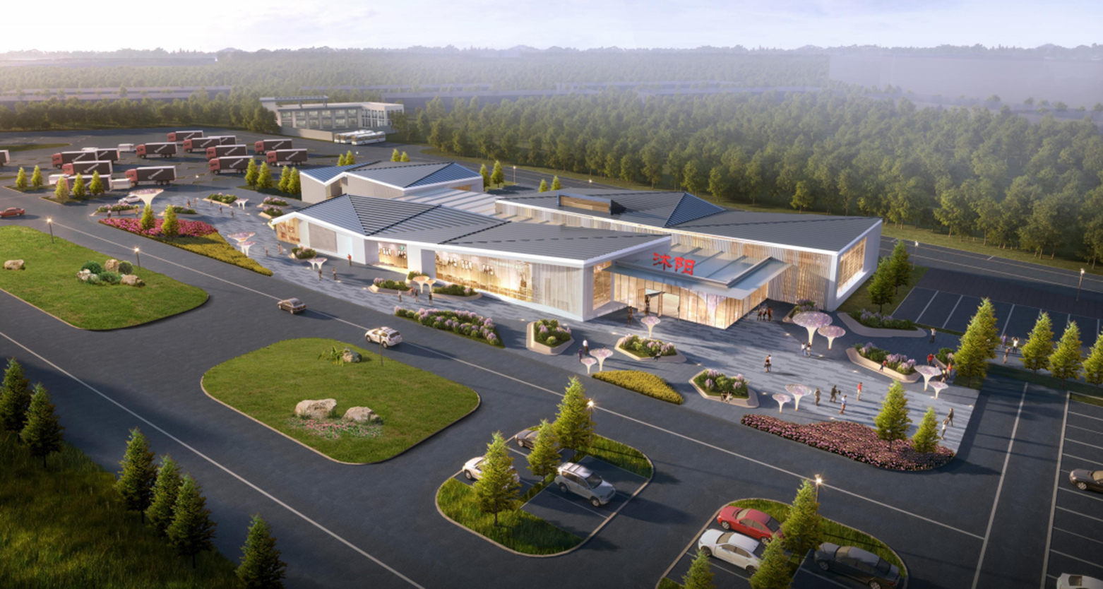 京沪高速公路新沂至淮安段全线采用双向八车道高速公路标准扩建,设计速度120公里/小时,沿线新建刘老庄、新沂东收费站、沭阳服务区等服务设施。沭阳服务区总用地面积183.2亩,建筑面积11189.93平方米,其建设有利于完善区域综合交通运输体系,提升公共服务能力,对沭阳地区的经济发展起到积极推动作用。