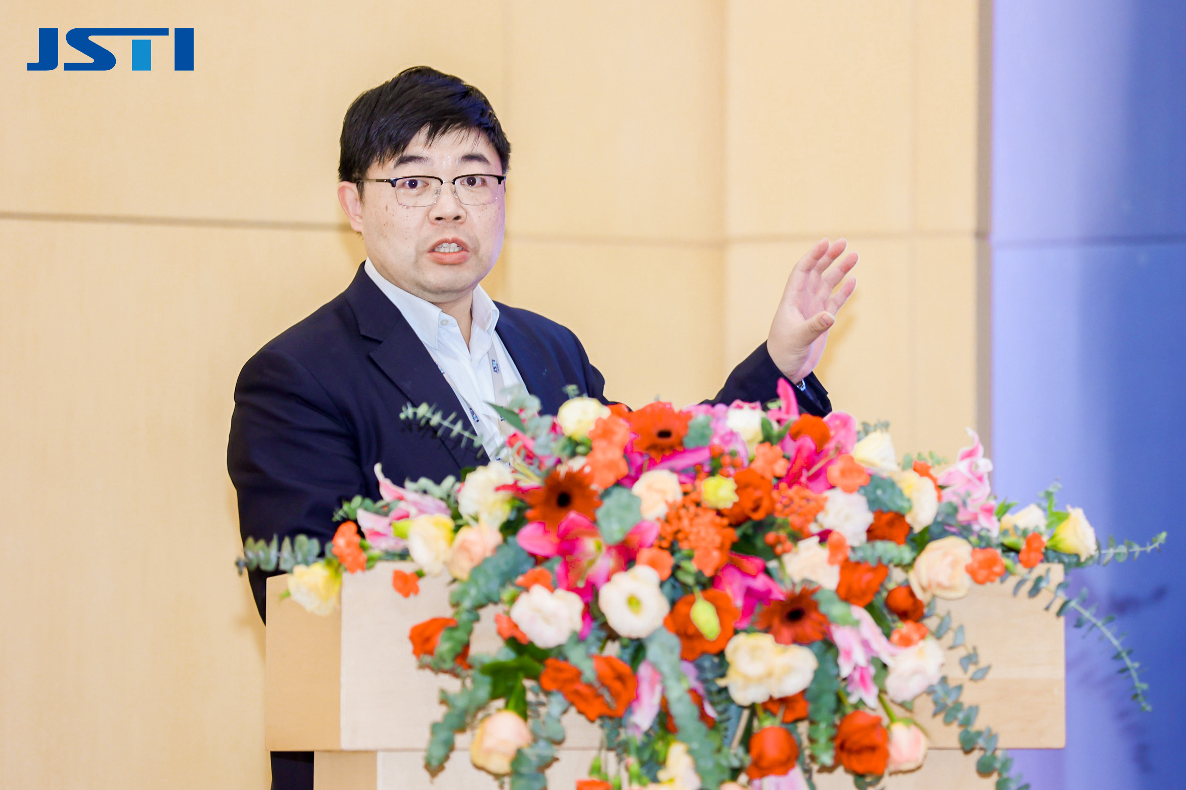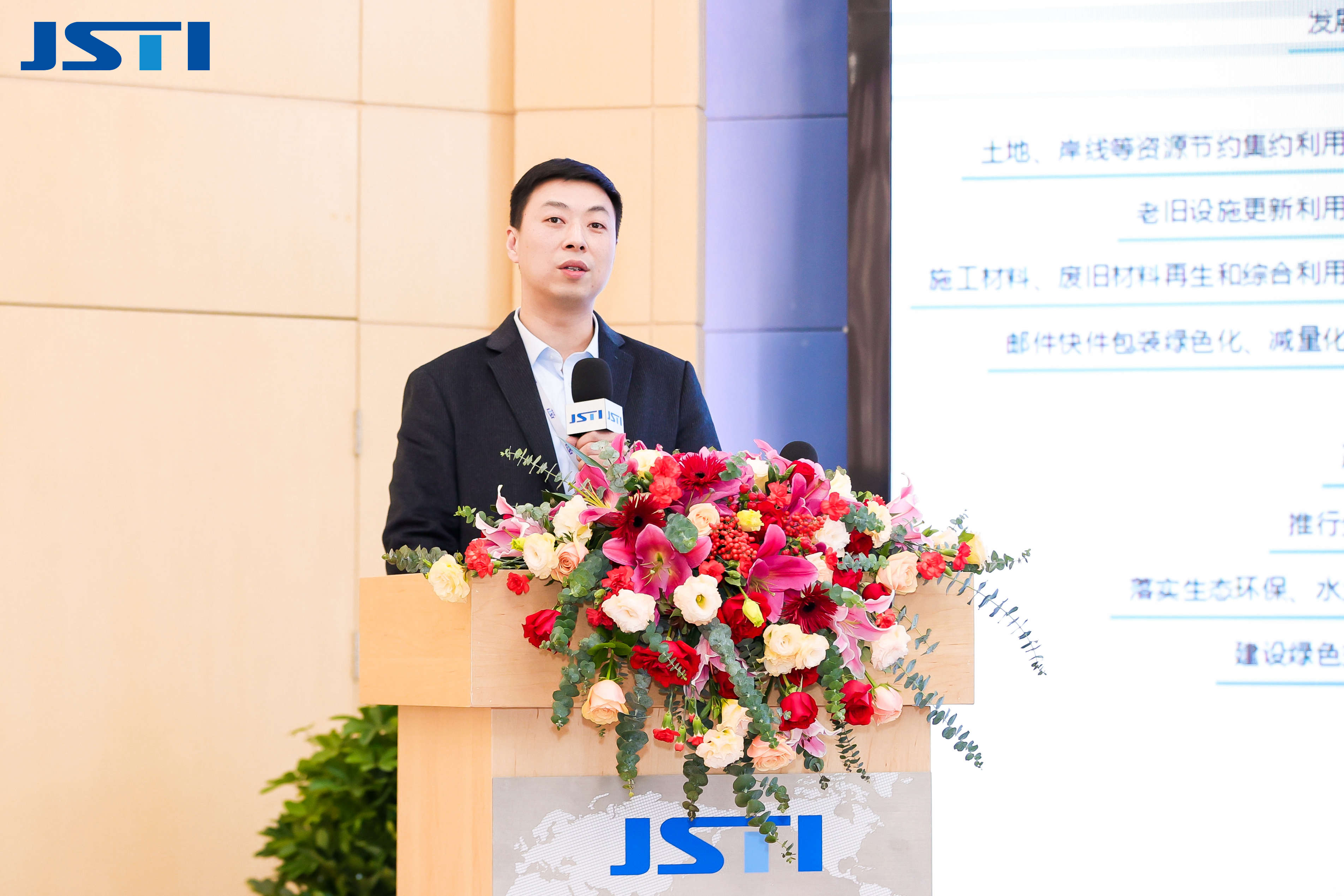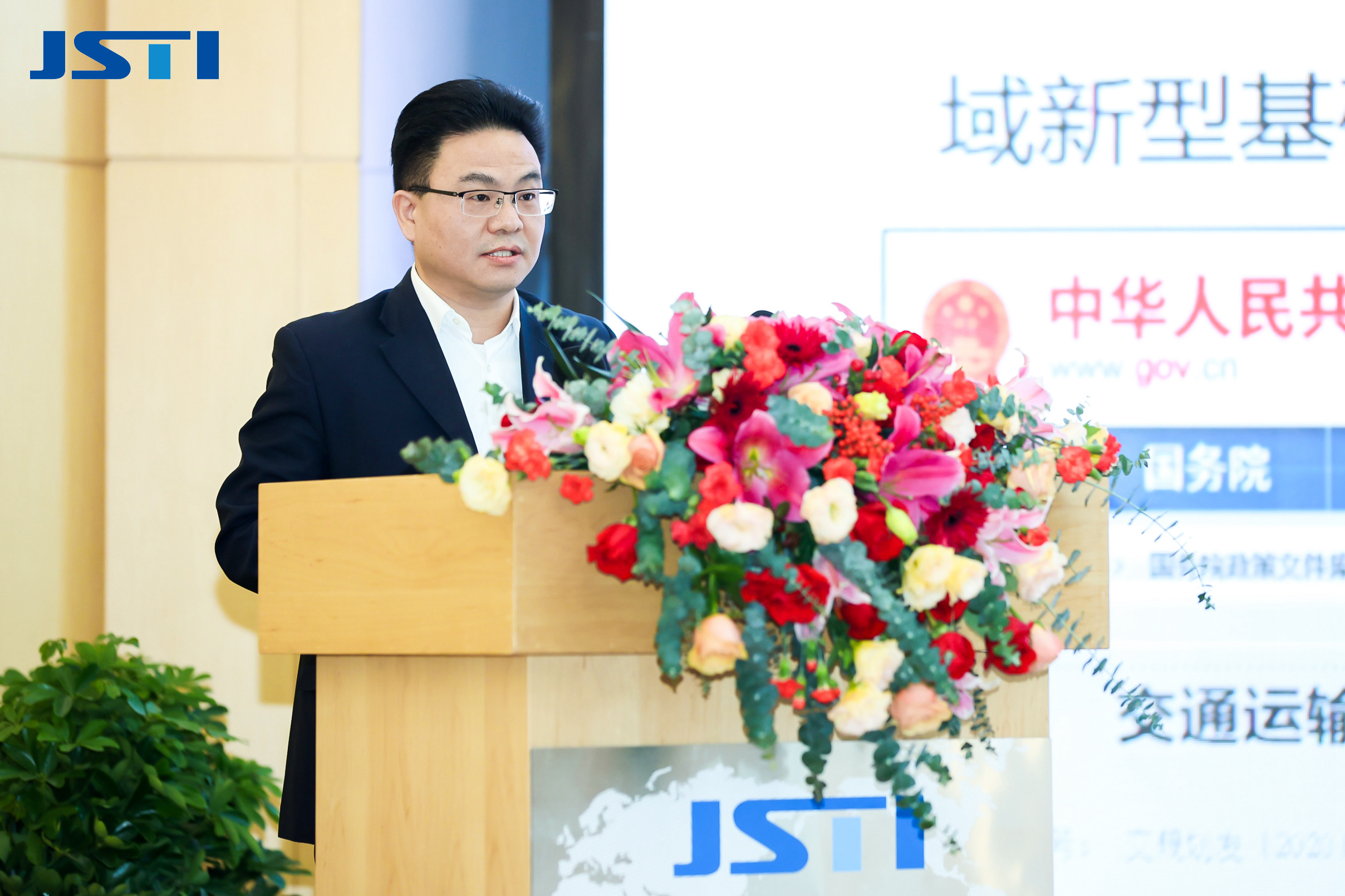 ▲ 江388vip太阳集团官网能源科技发展有限公司总经理王勤发布《双碳背景下的绿色交通综合解决方案》