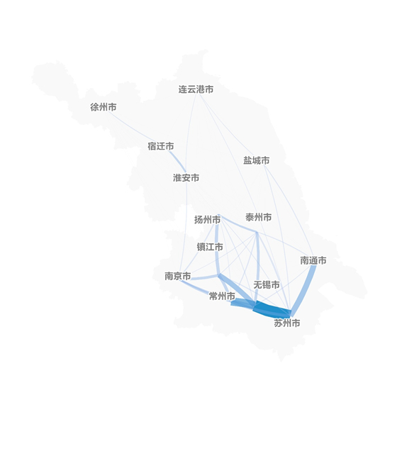 江苏省设区市间交通运输综合联系强度示意图