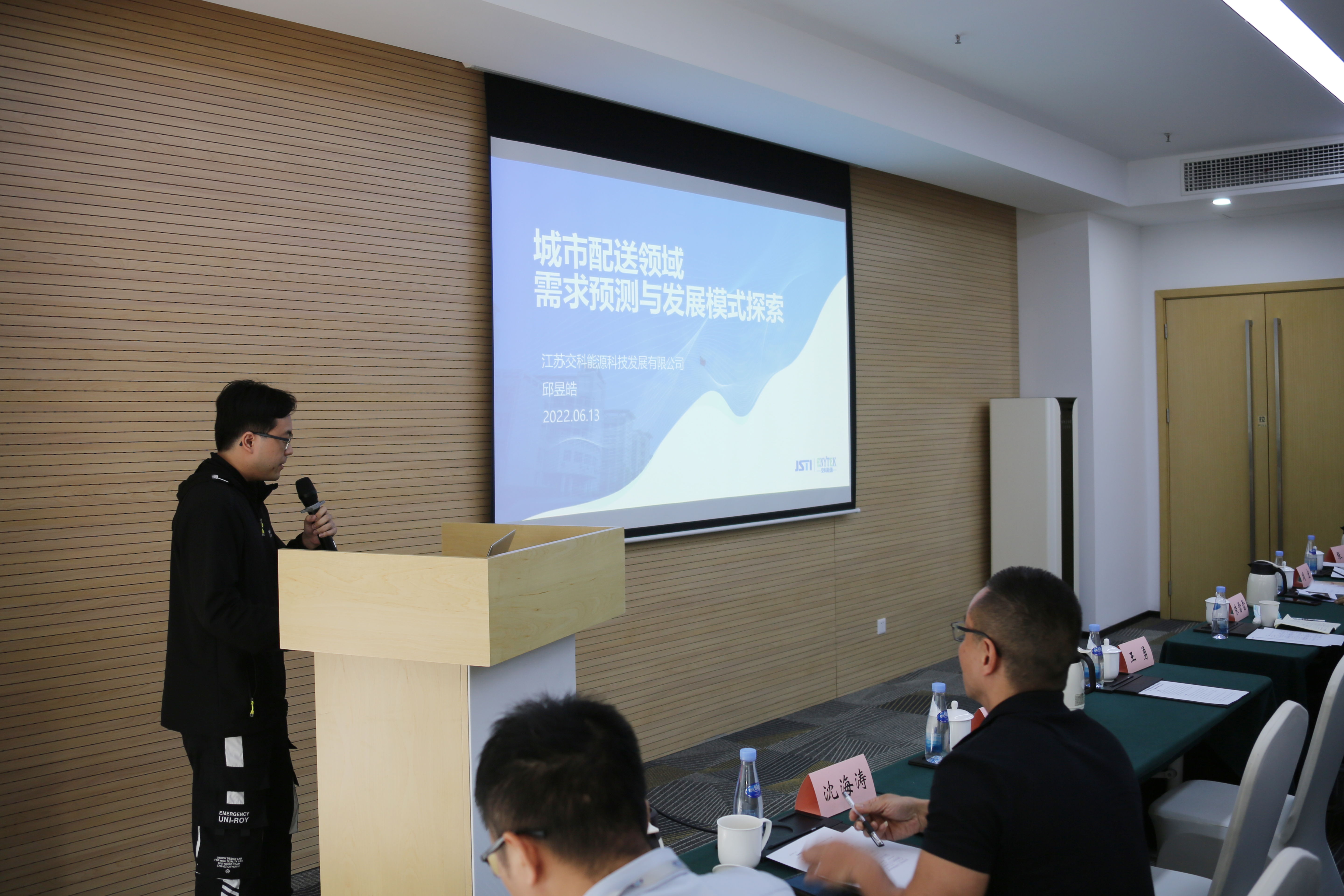 邱昱皓以《城市配送需求预测与发展模式初步探索》为题,分享了城市配送的不同类别与运力投放方案,通过数据分析预测城市配送的需求,并提出现有模式、低碳模式、脱碳模式三种场景下的城市配送解决方案。
