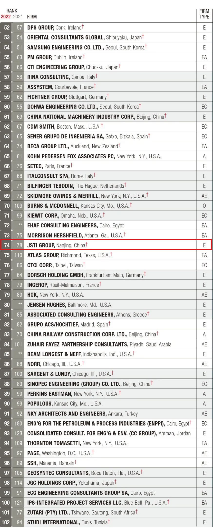388vip太阳集团官网 | 2022年ENR双榜发布!集团荣登“全球工程设计公司150强”排名第57位、“国际工程设计公司225强”排名第74位