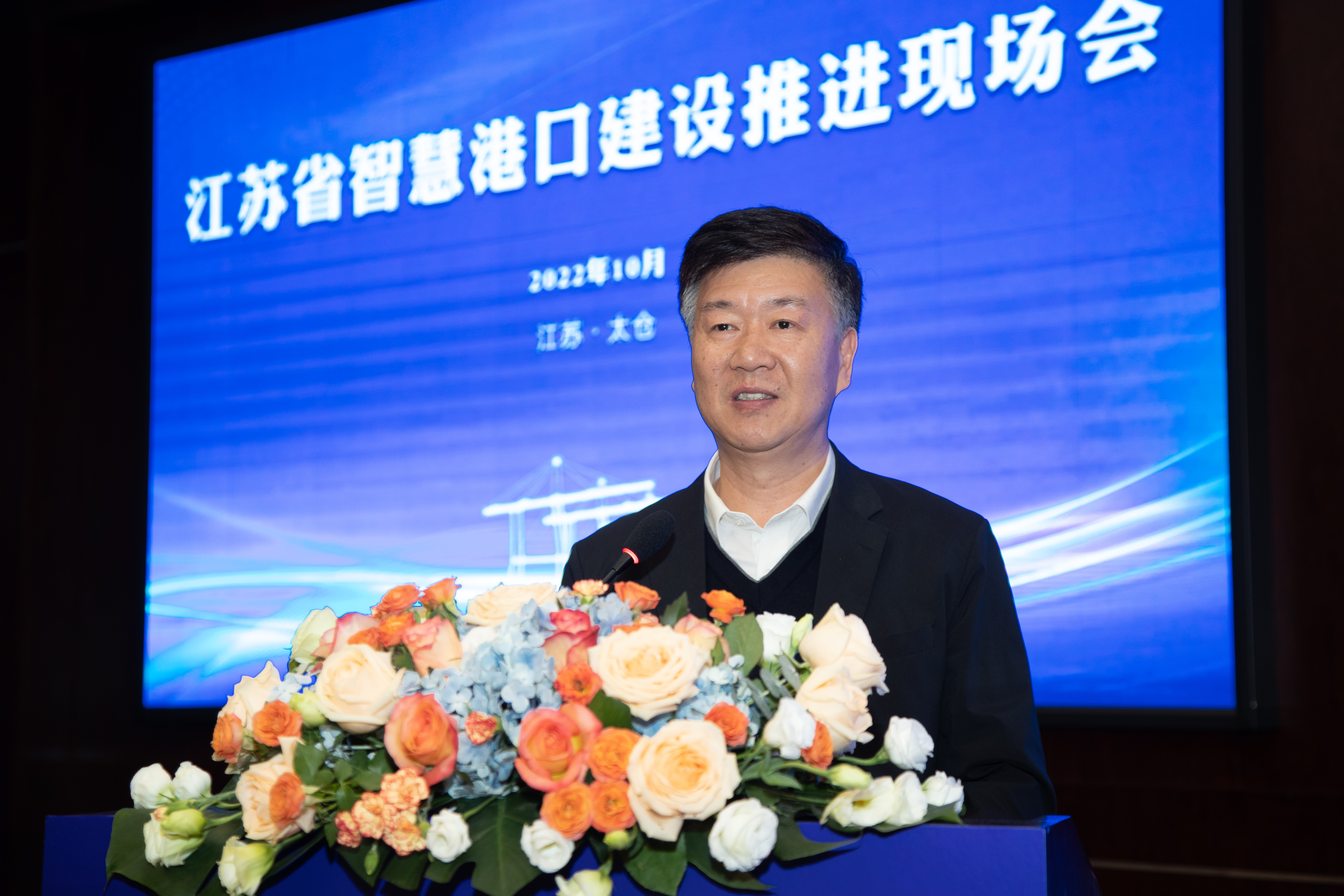 10月28日,由江苏省交通运输厅主办、江苏省港口集团承办的江苏省智慧港口建设推进现场会于江苏省太仓市顺利召开。大会由上海组合港管委会办公室副主任侯建宇主持,江苏省交通运输厅党组成员、副厅长梅正荣,江苏省交通运输厅港口管理处处长李辉等出席会议并致辞。江苏省生态环境厅、商务厅、南京海关、江苏海事局、太仓港口管委会、各设市交通运输局与厅属有关单位部门代表,以及连云港港口集团、南通港口集团、盐城港控股集团、江阴港港口集团、徐州港务集团、淮安市港口物流集团、宿迁港口集团等智慧港口领域相关单位代表出席会议。388vip太阳集团官网集团水利水运院院长杨扬出席会议并发言。