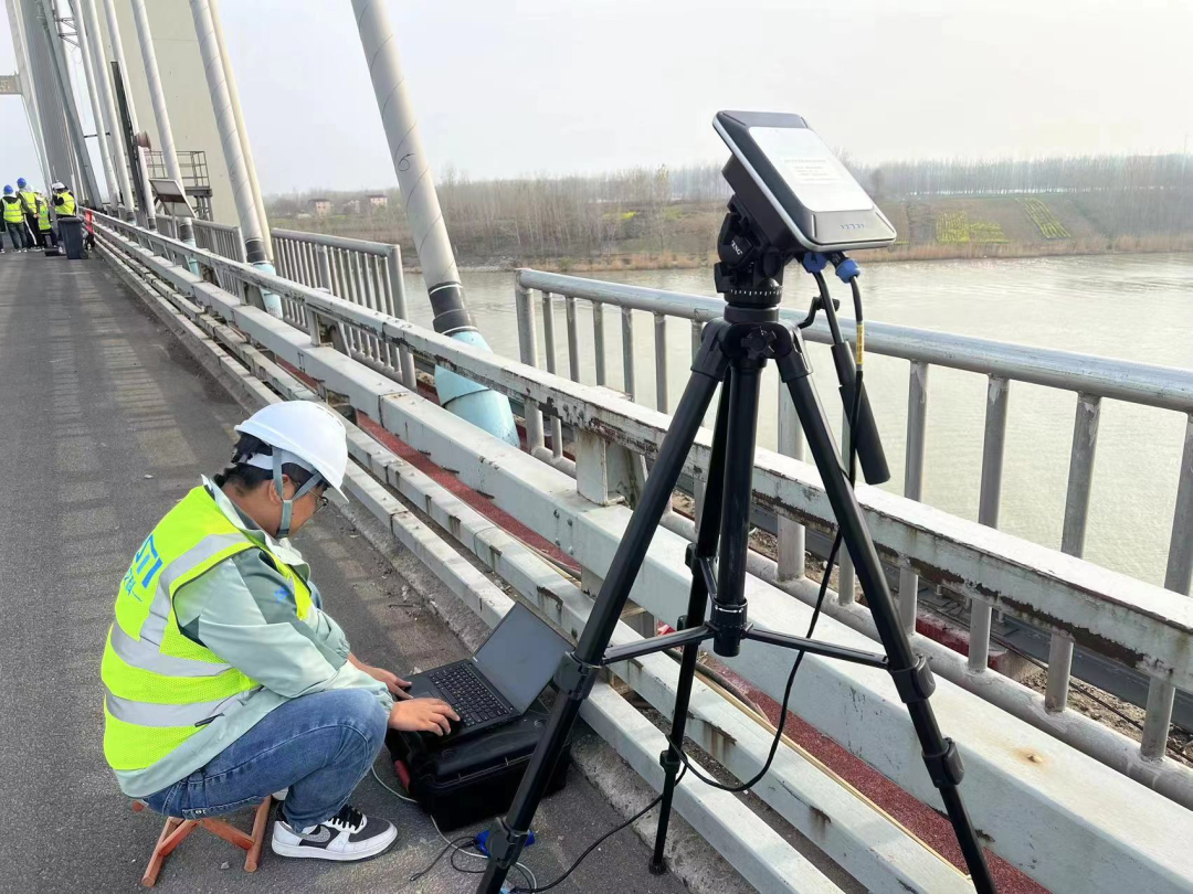 在综合检测评估项目中采用了三维激光扫描技术、微波雷达测试技术、爬索机器人技术、无人机+图像拼接识别技术以及视频摄像动测技术,进而对淮安大桥进行高密度、高精度三维数据点云数据采集。不仅实现了结构检测盲区的尺寸测量及高清展示,也及时排除了试验中的干扰因素,提高了数据质量,助推数字化高效试验。