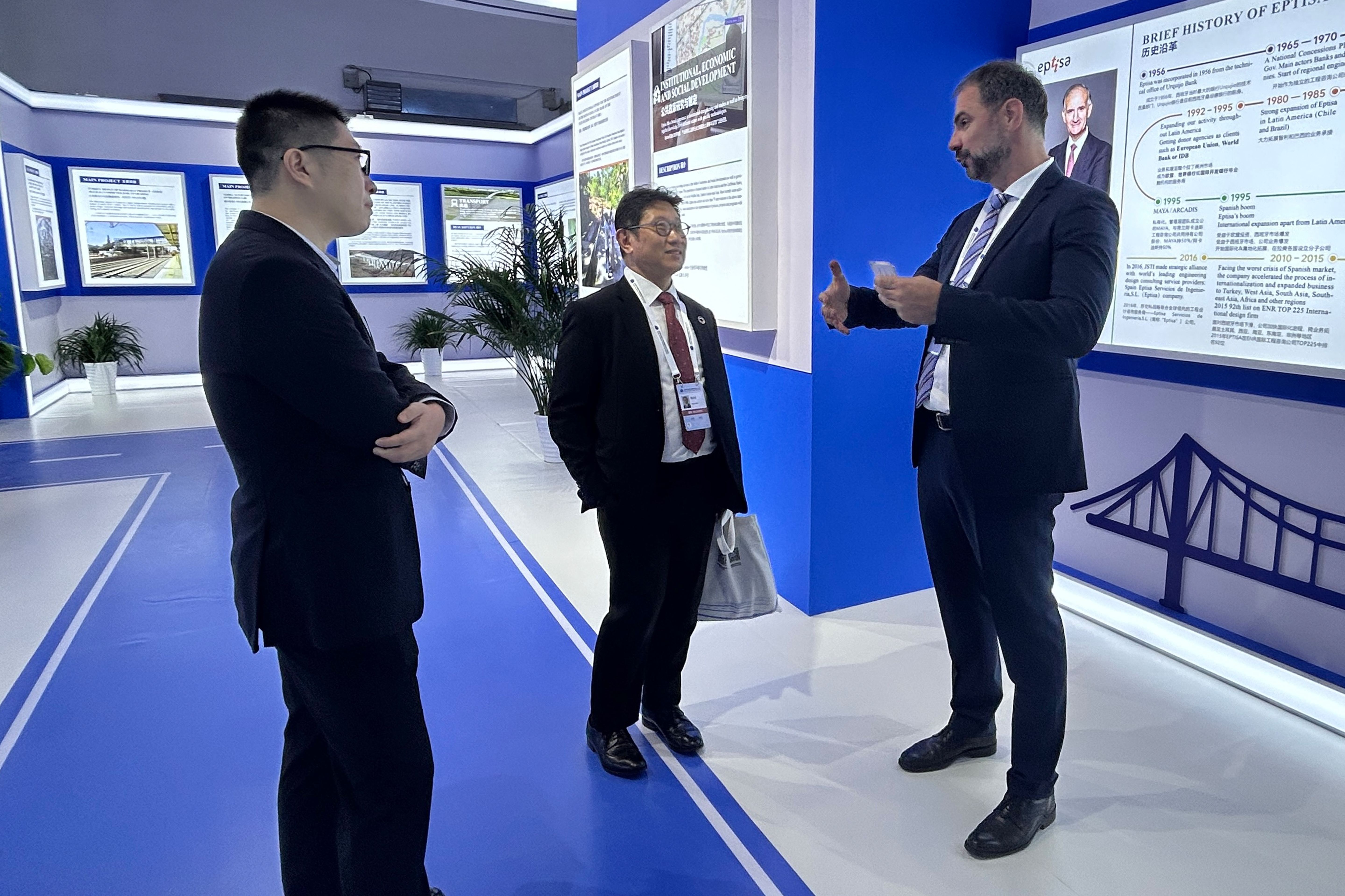本次集团展位分为388vip太阳集团官网和Eptisa两个区域,通过实物展示、在线演示、互动交流等方式,围绕“绿建、绿能、绿云;智建、智行、智感”六大主题,集中展现了集团与Eptisa在交通运输基础设施智能升级、新型交通设备研发、智慧化交通运营服务等方面的新技术、新突破、新成就。全方位彰显集团综合实力,受到国内外与会领导专家及同行人员的广泛关注。