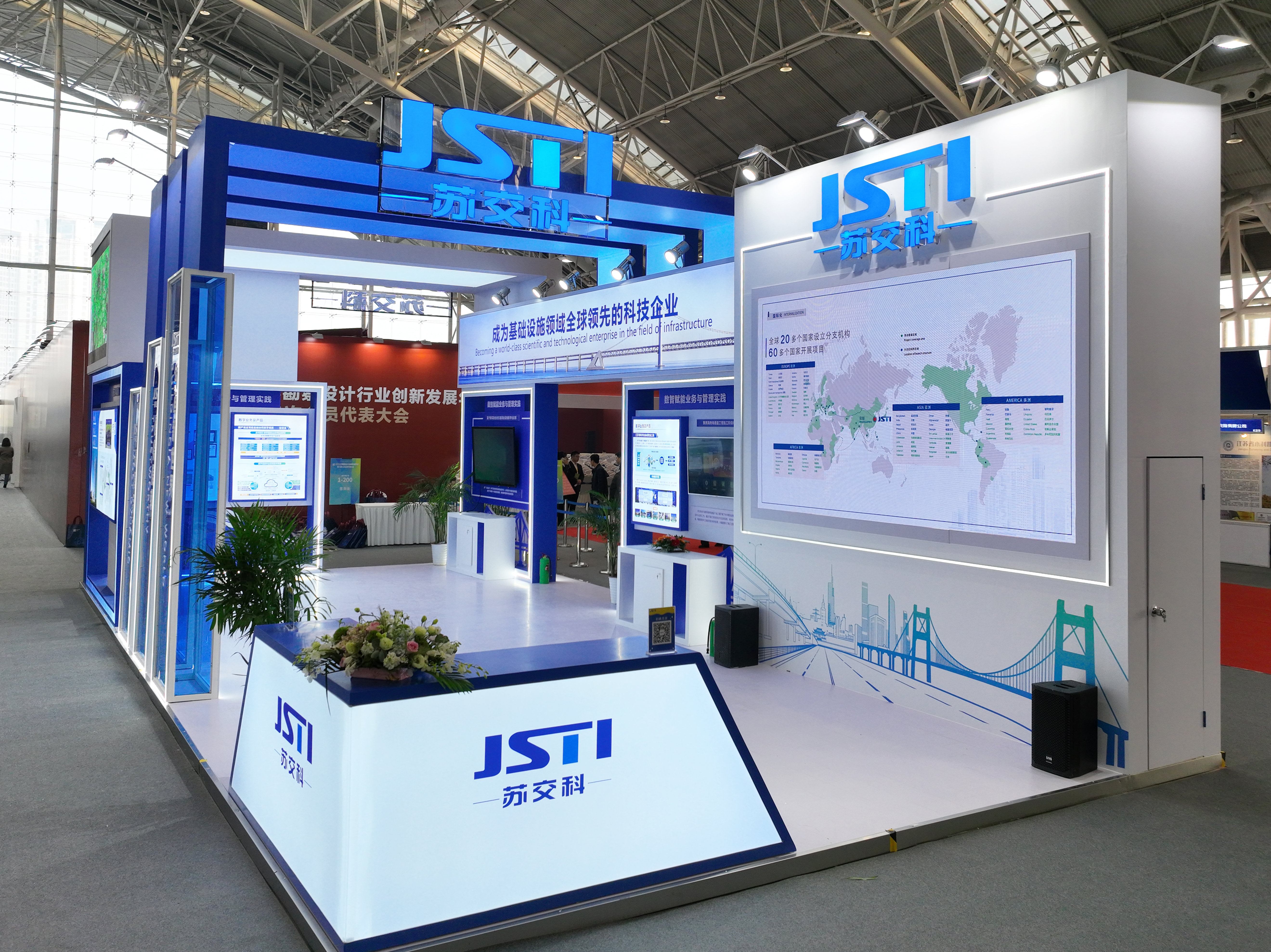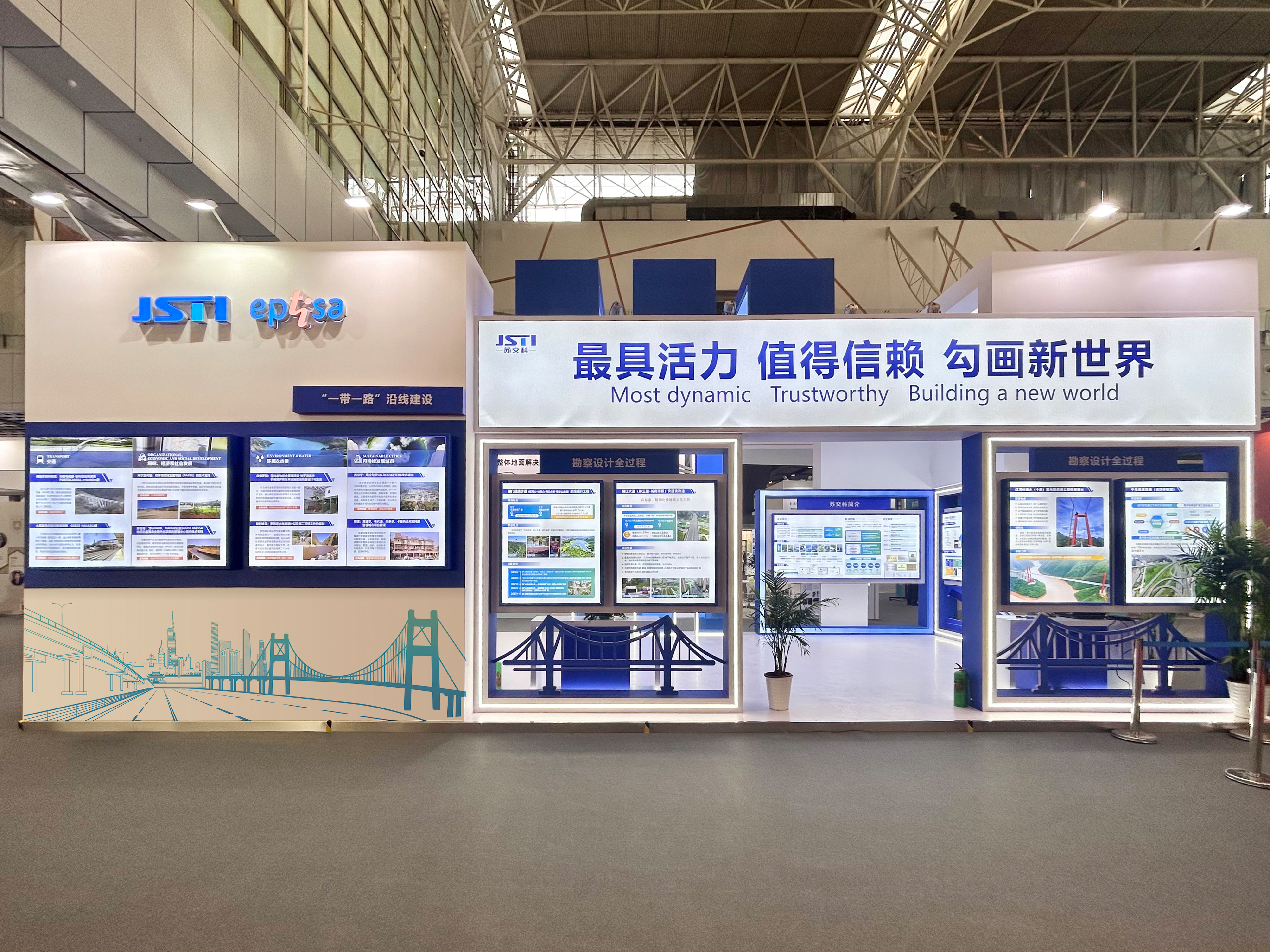 本次集团重点展出在岩土工程勘察,高速公路和城市快速路设计,水利基建和轨道交通设计等数十个具有技术特点的国内外典型勘察设计项目,以及业务数字管理平台、国产自主可控云端协同数字底座——悟空云、基于数实融合的交通基础设施数字化应用、黄茅海跨海通道工程施工阶段BIM技术应用、城市生命线平台等数字化项目。