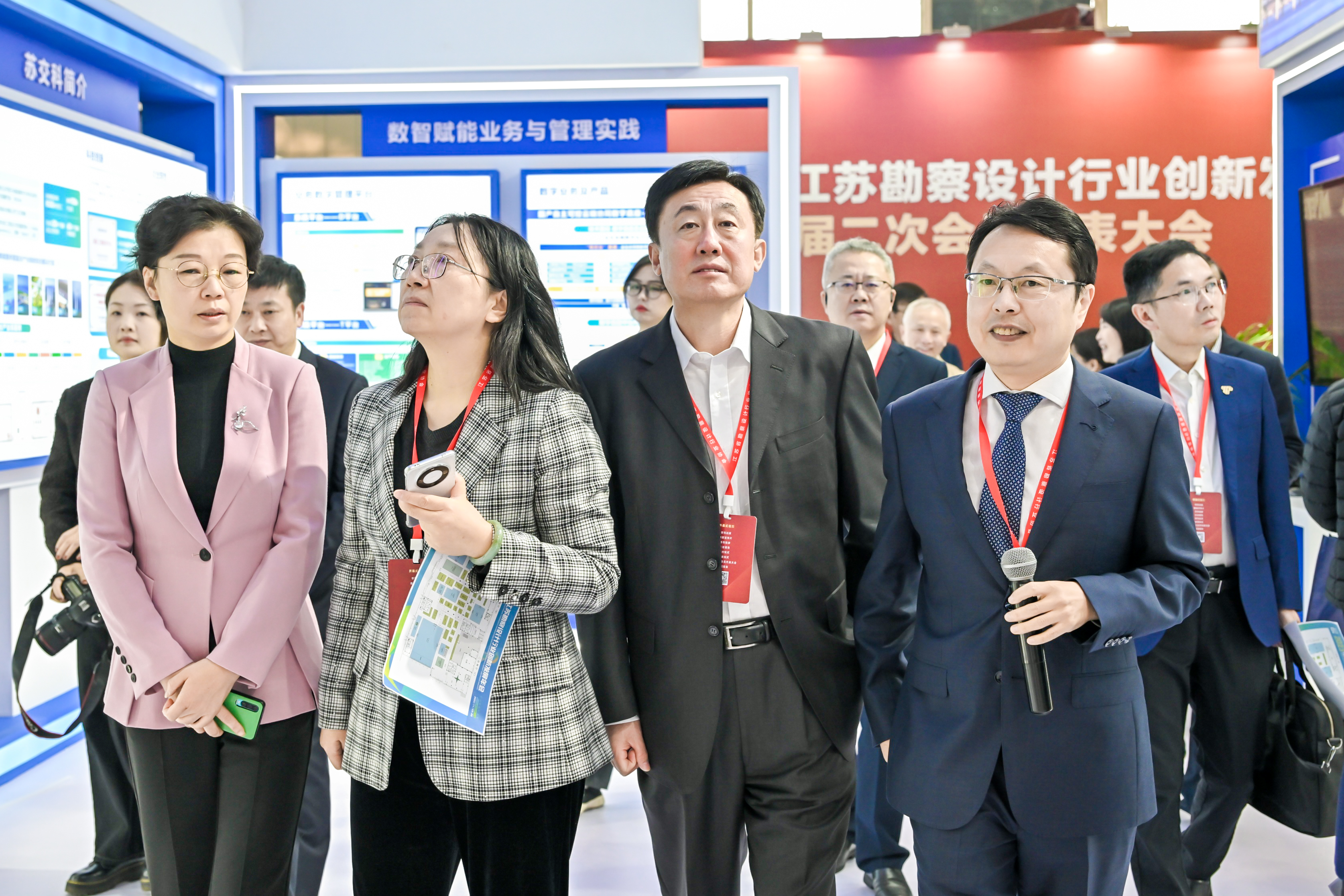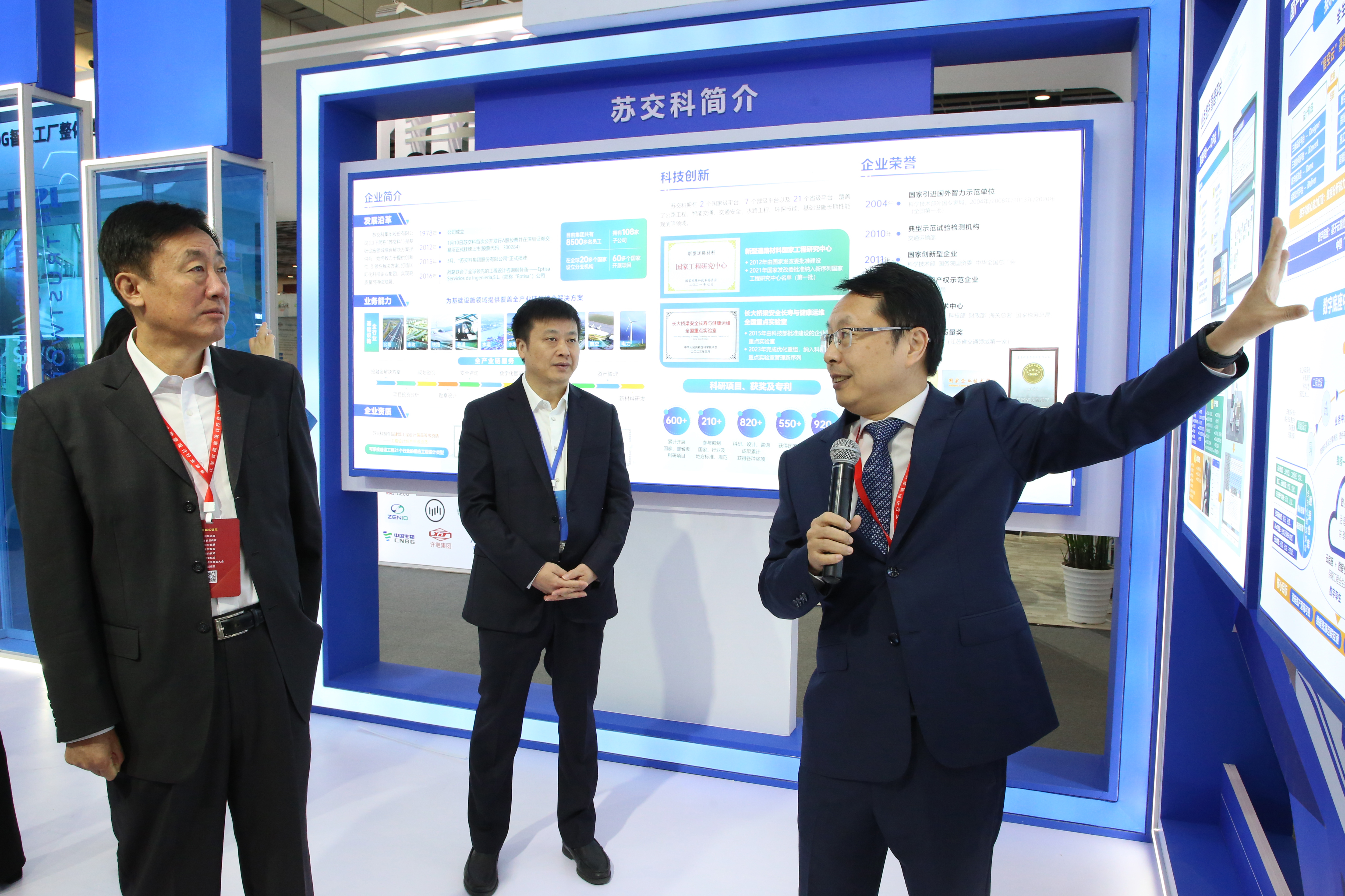 展会现场,中国勘察设计协会理事长朱长喜、江苏省住房和城乡建设厅副厅长金文、江苏省勘察设计行业协会理事长孙晓文等相关领导亲临388vip太阳集团官网展位并对集团近年来的科技创新与业务发展予以充分肯定。