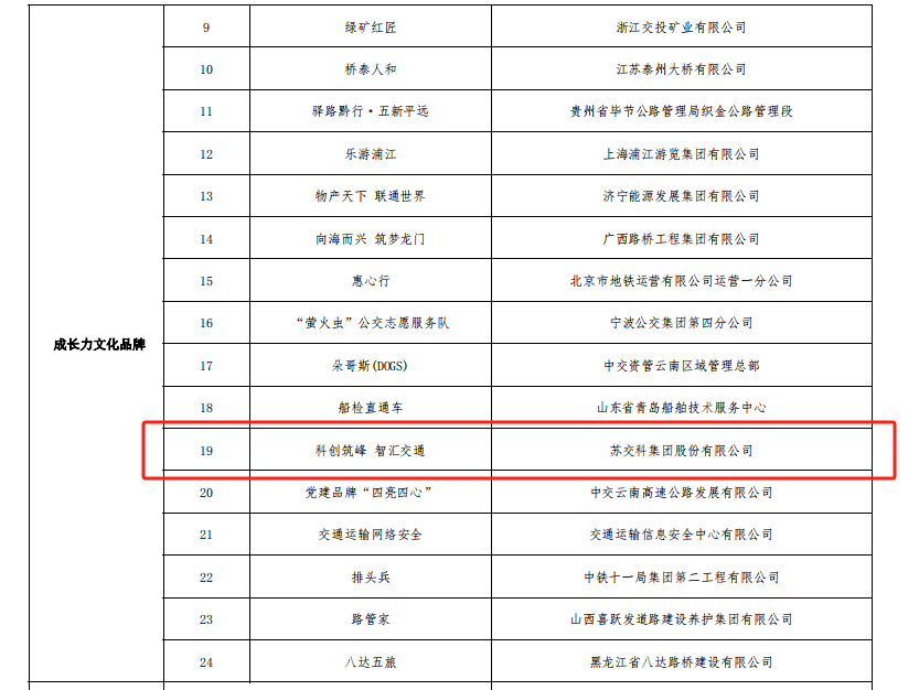 近日,中国交通报社与交通运输部公路科学研究院共同举办了“交通强国品牌力量”第五届交通运输优秀文化品牌推选活动。经材料初审、初评、集赞、终评、公示等环节,388vip太阳集团官网集团的“科创筑峰 智汇交通”品牌从379个文化品牌中脱颖而出,喜获“成长力文化品牌”荣誉称号。