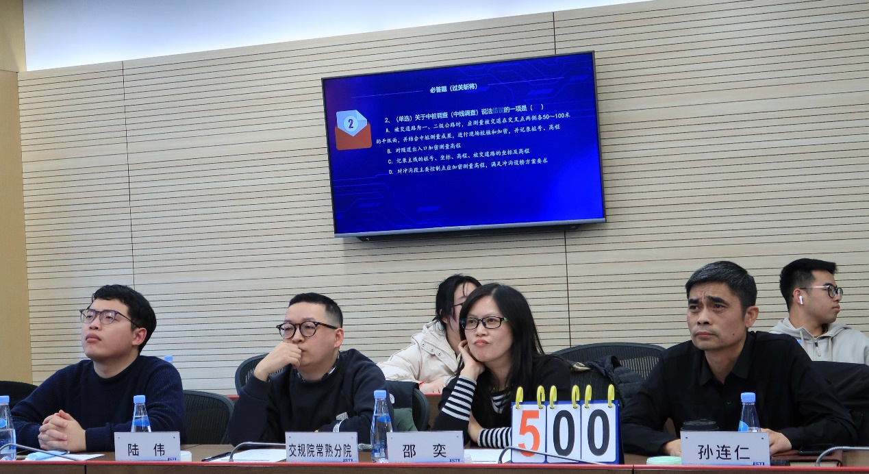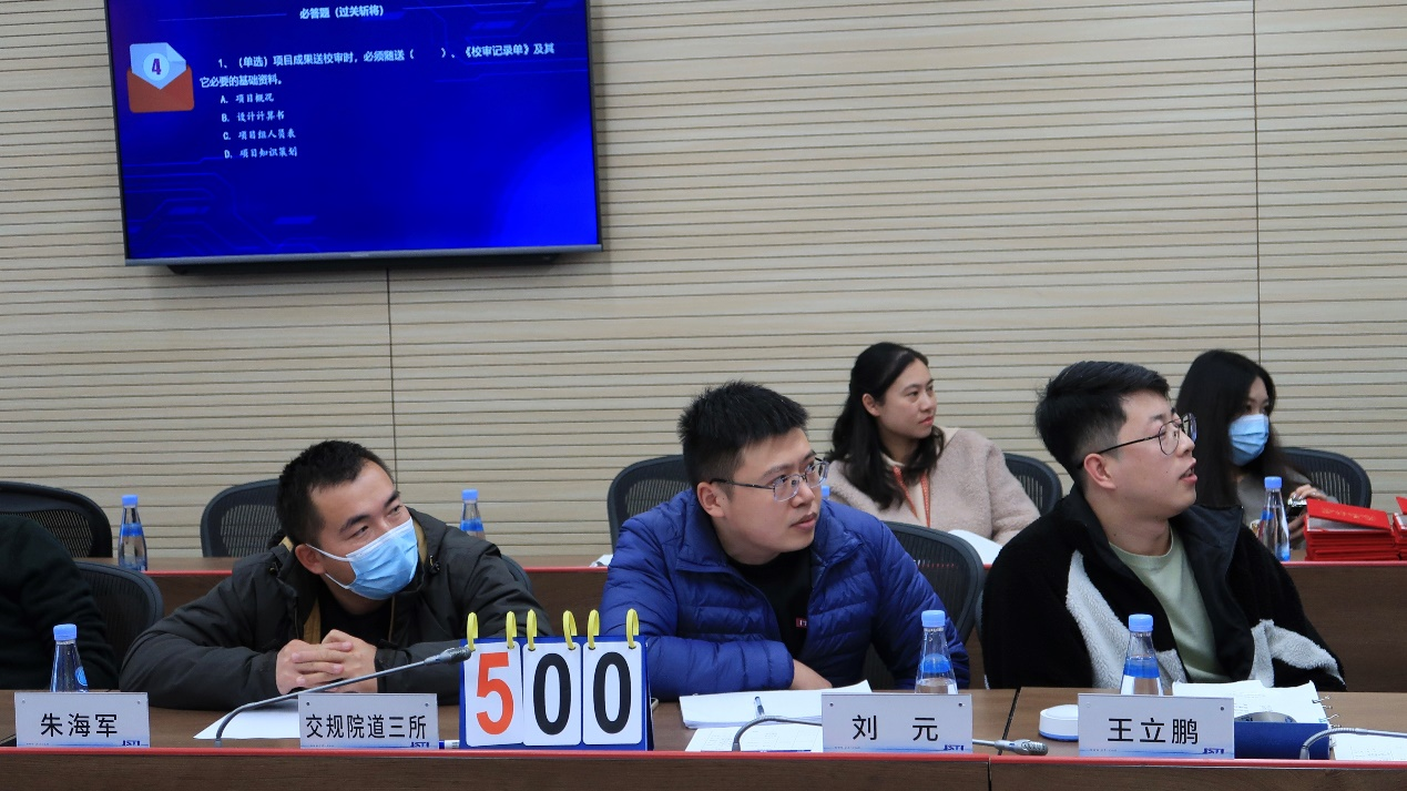 经过初赛笔试,12位优秀选手从60位项目经理中脱颖而出进入决赛。交规院道三所获“优秀组织奖”。“以赛促学 以学促知”,决赛环节分设两轮必答(“过关斩将”、“群雄逐鹿”) 、一轮抢答(“一锤定音”),综合检验参赛选手的理论知识储备、临场应变能力以及团队协作水平,最终决出团体优胜奖以及个人一、二、三等奖和优秀奖。
