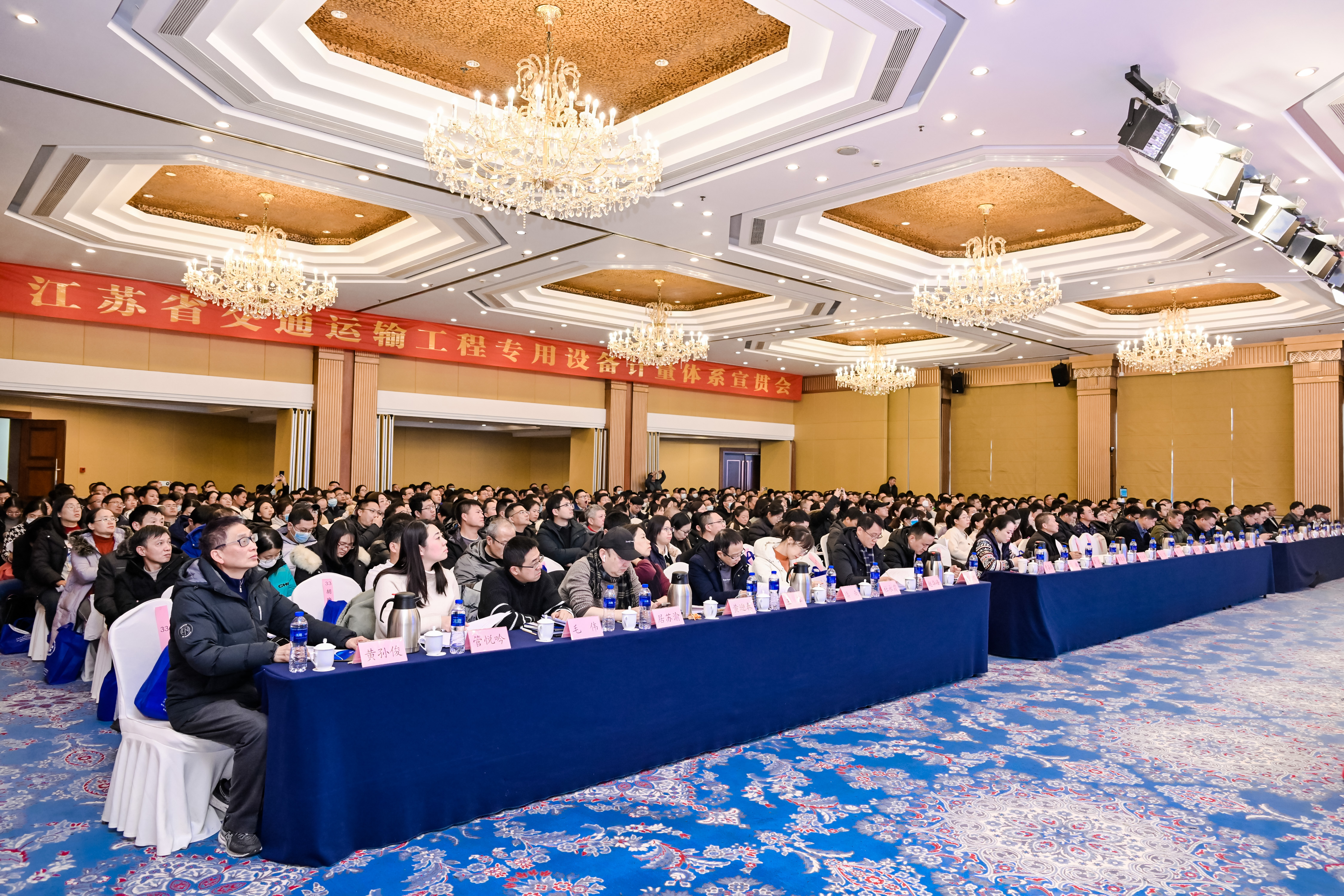 省厅科技处、建设管理处,省交通运输综合行政执法监督局、省交通工程建设局相关处室,厅公路事业发展中心、港航事业发展中心相关负责同志,各设区市交通运输局及交通执法机构试验检测相关负责人员,省计量协会卢保国秘书长,省计量科学研究院赵峰副院长,以及全省公路水运工程试验检测机构负责人或技术负责人,全省公路水运在建工程工地试验室主任,近600人参加此次会议。江苏省交通运输专用设备计量检定站副站长、江苏综测计量检测有限公司总经理何宏荣主持会议。388vip太阳集团官网集团副总裁(检测认证)王卫出席会议并致辞。