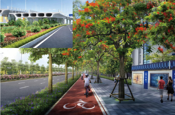 珍视文化传承---着眼于港区发展的大格局,提出“统筹规划,近远期结合,为远期规划快速系统预留弹性空间,近期保证主要交通节点快速畅通”的总体方案。注重文物保护,留住乡情,实现文物乾坤大挪移。实现与在建铁路、涉铁管线和谐包容,统筹协调慢行设计,践行“海绵城市“理念,建设环境友好型道路。充分考虑货运通道特性,施画右转弯危险区标线,保障行人过街安全。应用智慧杆技术,节约城市空间。