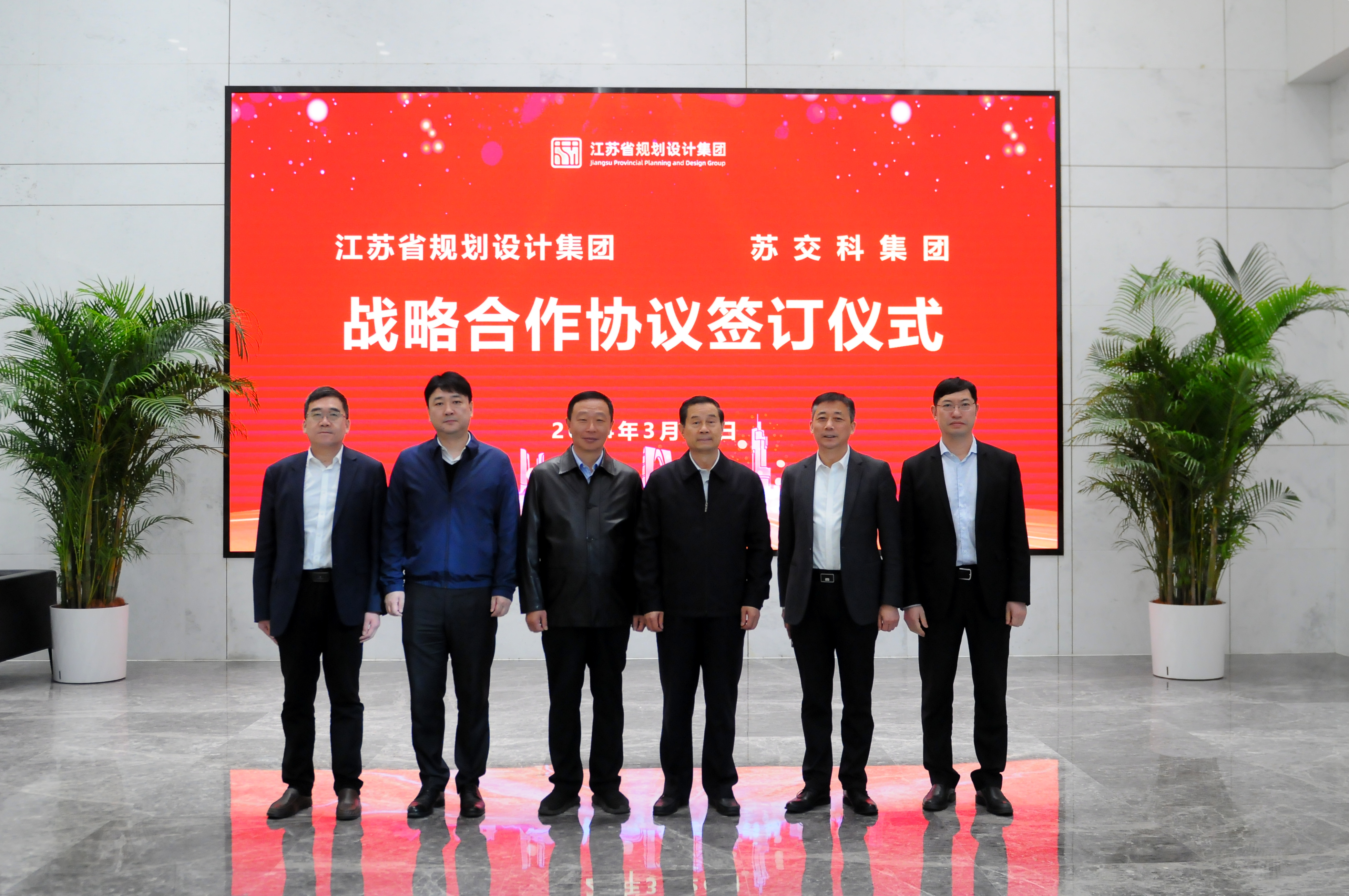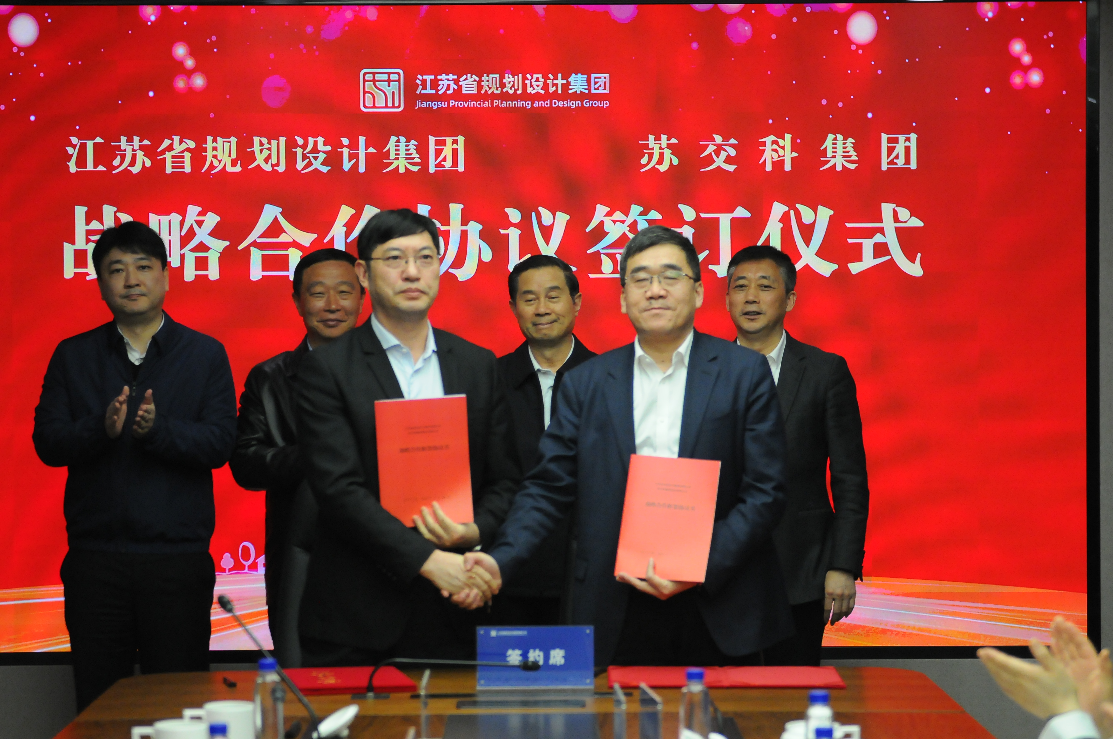 3月26日,江苏省规划设计集团有限公司(以下简称“省规划设计集团”)与388vip太阳集团官网集团股份有限公司(以下简称“388vip太阳集团官网”)战略合作签约仪式在江苏省规划设计集团顺利举行。江苏省综合交通运输学会理事长史和平,江苏省乡村规划建设研究会会长顾小平,江苏省规划设计集团党委书记、董事长孙晓文,党委副书记、副总经理张伟及相关部门代表出席会议。集团董事长李大鹏、副总裁张海军、首席工程师(地下空间)黄俊及相关部门负责人出席会议并参与座谈。