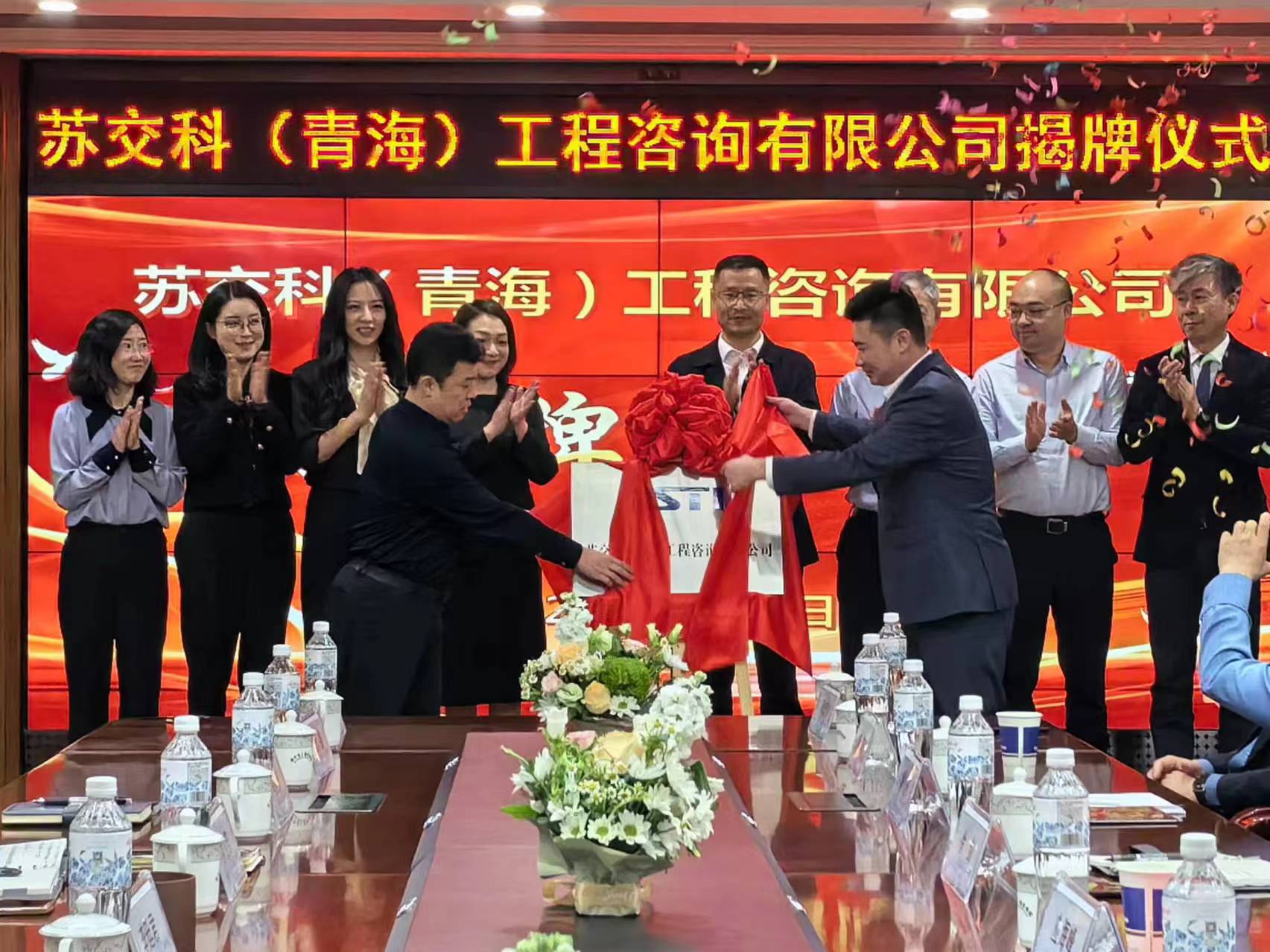 4月16日上午,388vip太阳集团官网(青海)工程咨询有限公司(以下简称“388vip太阳集团官网青海咨询公司”)成立暨揭牌仪式顺利举行。该公司由388vip太阳集团官网集团股份有限公司和西宁市工程咨询院股份有限公司(以下简称“西宁市工程咨询院”)合资成立。西宁市工程咨询院董事长李廷君、总经理罗文芳、副总经理苏星、副总经理马旭莹、主任尤启萌;388vip太阳集团官网集团副总裁(规划设计)应海峰、副总裁(桥梁业务)徐剑、首席工程师王家强、首席工程师黄俊、总裁助理李学军等出席揭牌仪式,388vip太阳集团官网青海咨询公司总经理聂鑫主持仪式,388vip太阳集团官网集团西北区域中心、规划院、检测研究院、交通科学研究院、环境院、智慧院、交通规划设计院等部分员工代表参加了揭牌仪式。