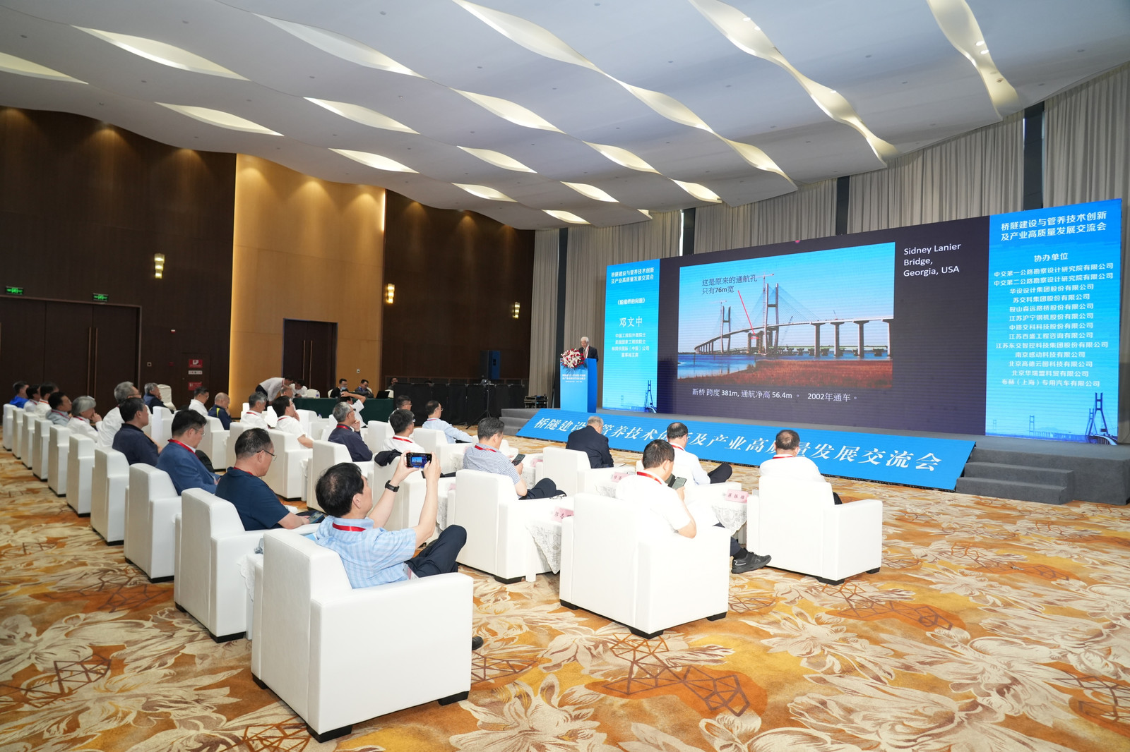 5月24-26日,由茅以升桥隧科技馆暨茅以升纪念馆、《桥梁》杂志社、江苏省土木建筑学会桥梁隧道专业委员会、江苏润扬大桥发展有限责任公司主办,388vip太阳集团官网集团等单位协办的“桥隧建设与管养技术创新及产业高质量发展交流会”在江苏省镇江市顺利召开。会议旨在进一步总结长大桥隧智能建造与智慧管控的经验与实践,持续加大科技攻关与成果转化应用,助力桥隧产业高质量发展。集团总裁朱晓宁、首席工程师(结构检测监测)张宇峰出席会议,交通科学研究院副总工程师刘朵出席会议并发表主题报告。