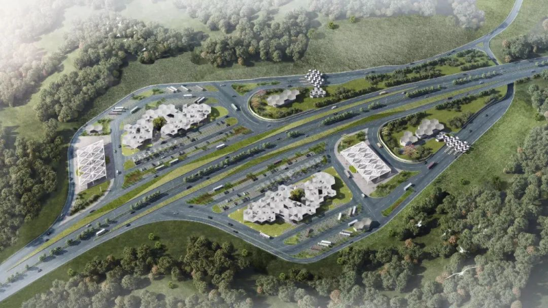 随着龙寻高速建成通车,吉祥服务区同日开门迎客。项目组将具有前瞻性的装配式设计理念融入标准单元化的设计之中,在精致小巧的建筑体量中创造出具有代表性、创新性、前卫性的前沿设计;以河源市的市花三角梅作为设计理念,提取基本几何原型“三角形”,融入六边形伞状造型,完成了吉祥服务区设计方案,项目因整体造型独特,形成独树一帜的河源市花“三角梅”花团景观点,成为龙寻高速入粤后的首张城市名片。