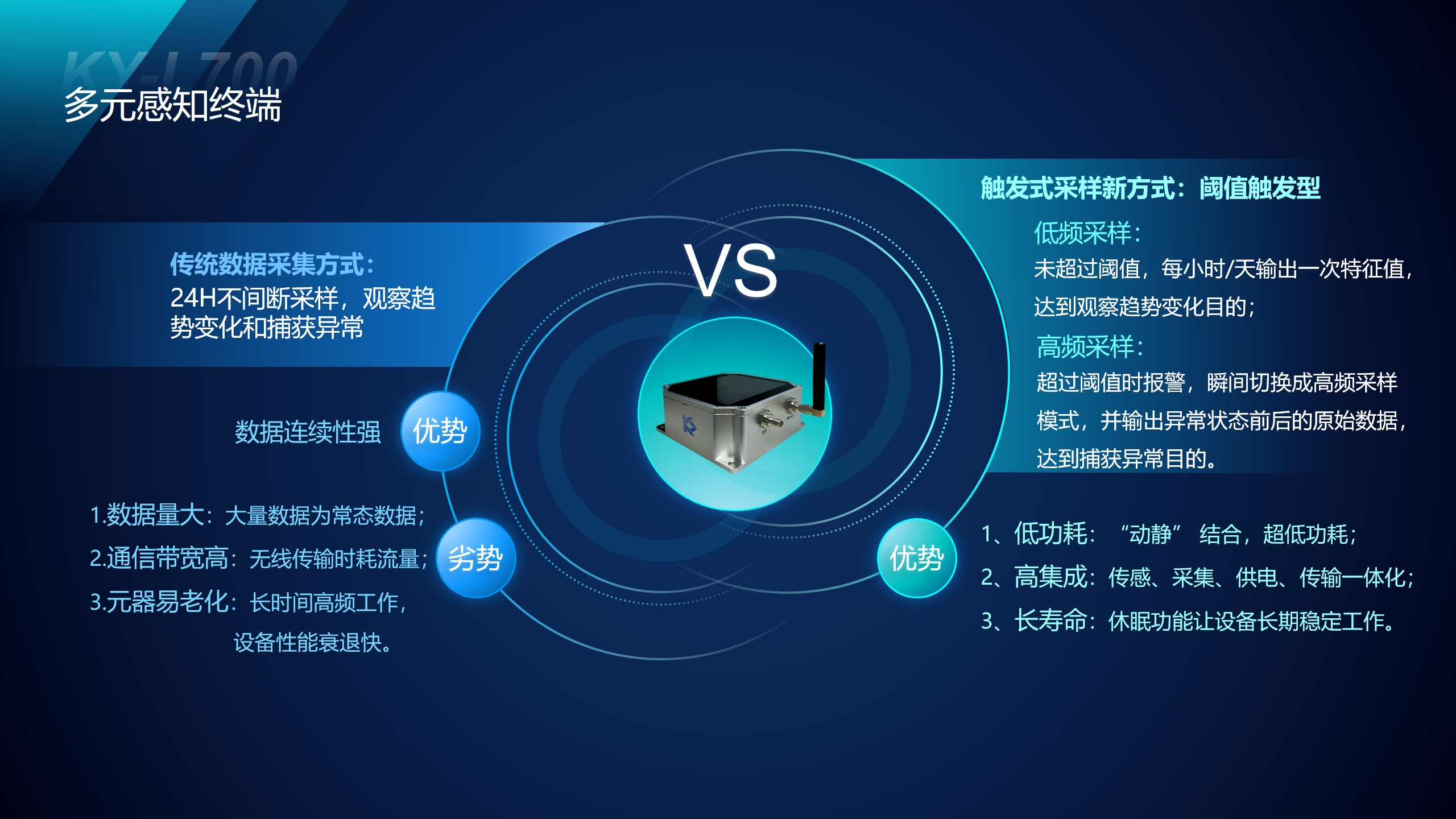 突破传统连续采集模式,创新性采用触发式采集新技术——多元感知终端(KY-L700)。