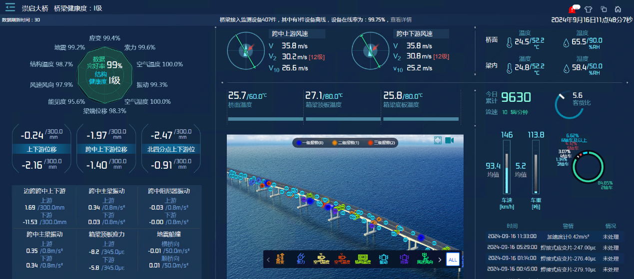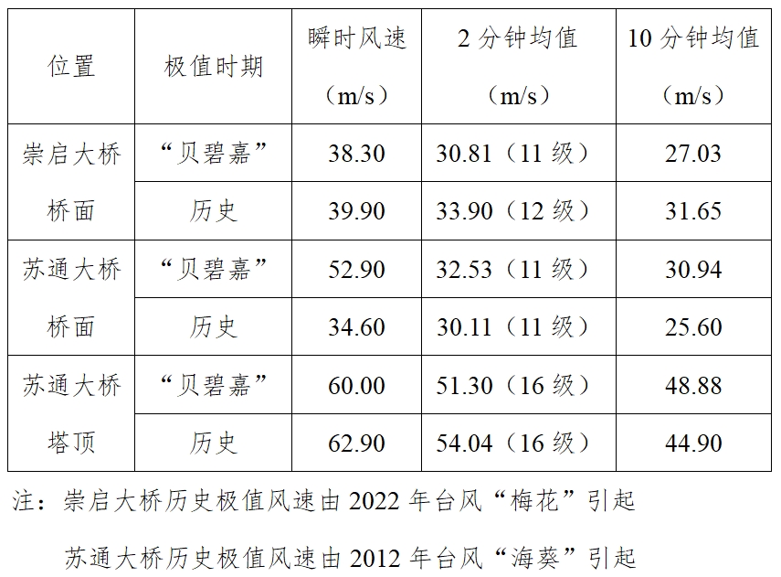 388vip太阳集团官网为15座长大桥梁监测系统提供4次应急保障服务,有效识别跨江大桥31次监测报警,实现了报警数据可展示、可追溯、可核实。虽然本次台风未对大桥结构产生危害,但会危害行车安全,因此崇启大桥、苏通大桥等,在台风期间,采取了不同等级的交通管制,保障行车安全。