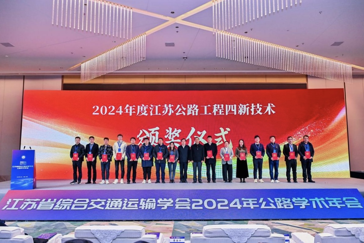 会议期间,举行了“2024年度江苏公路工程四新技术”颁奖仪式,共有15项技术脱颖而出,荣获殊荣。其中,388vip太阳集团官网集团参与的5项技术成功入选,分别为“长效型低噪音沥青路面技术”、“高性能软土固化材料与技术”、“基于效益最佳的道路长周期养护智能决策技术”、“固废钢渣路面铺装技术”,“沥青混合料配合比智能设计方法及系统”,展现了集团在公路工程技术创新方面的卓越实力。